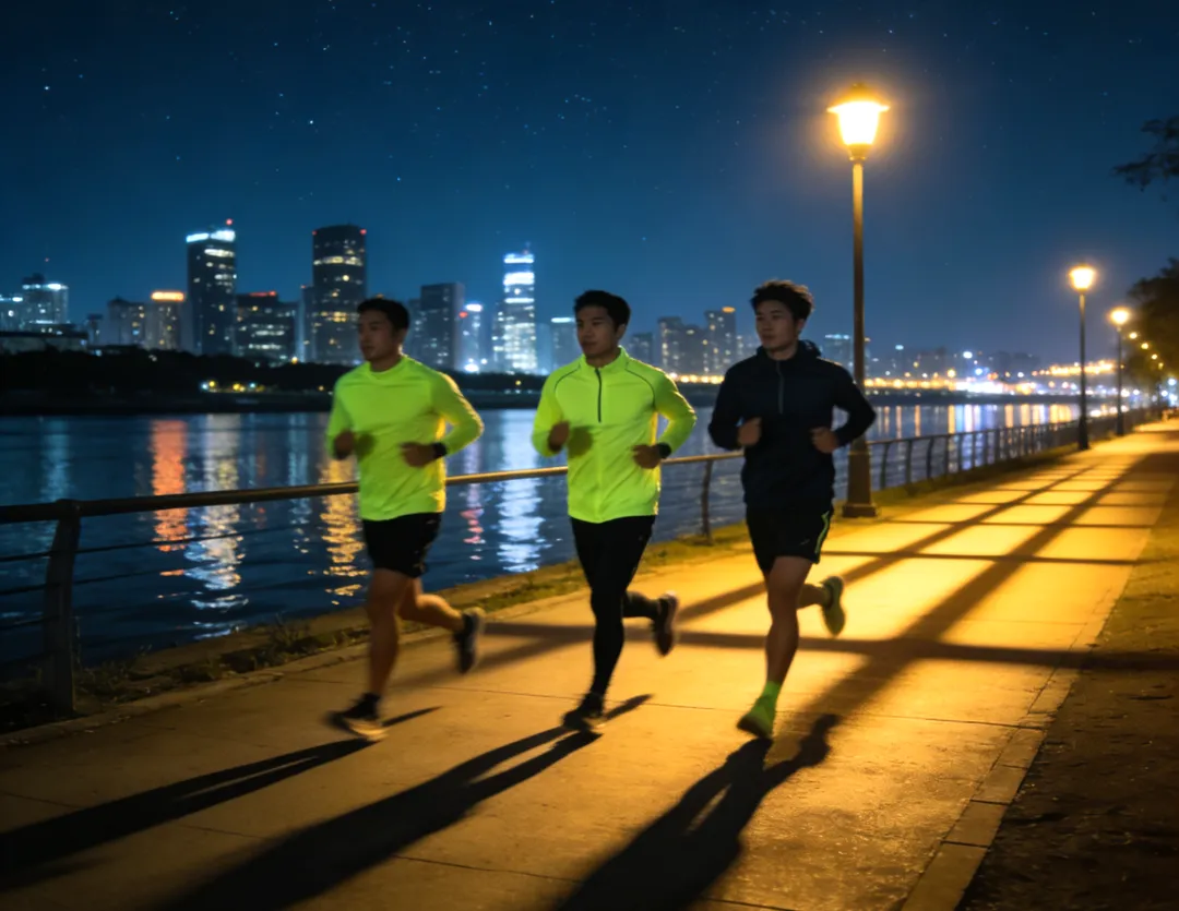 夜跑尽量选择光线充足、人流量适中的熟悉路线