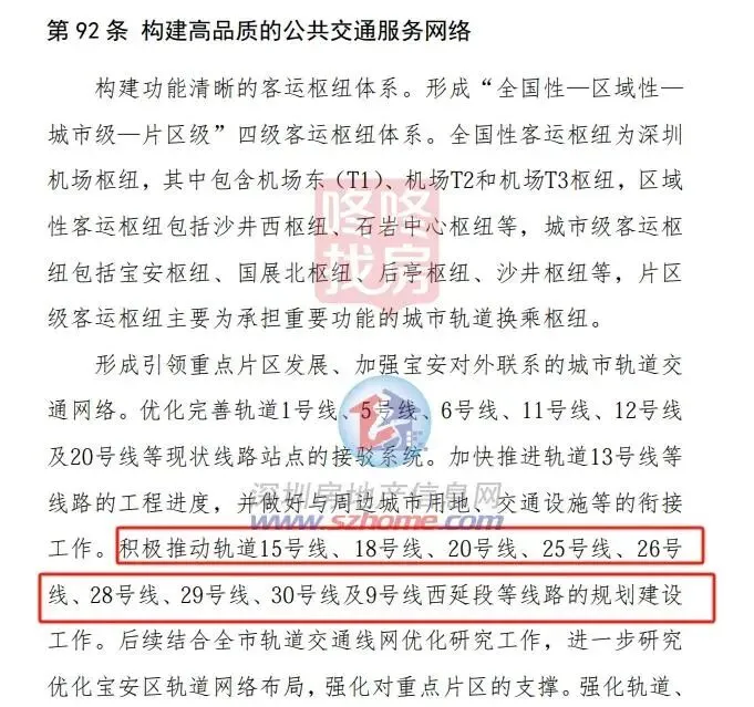 宝安区在轨道交通方面,提到积极推动轨道15号线、18号线、20号线、25号线、26号 线、28号线、29号线、30号线及9号线西延段等线路的规划建设工作。