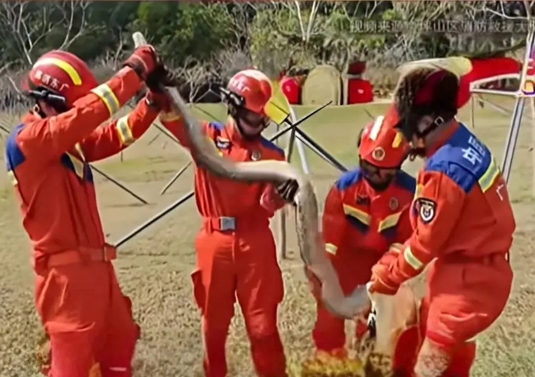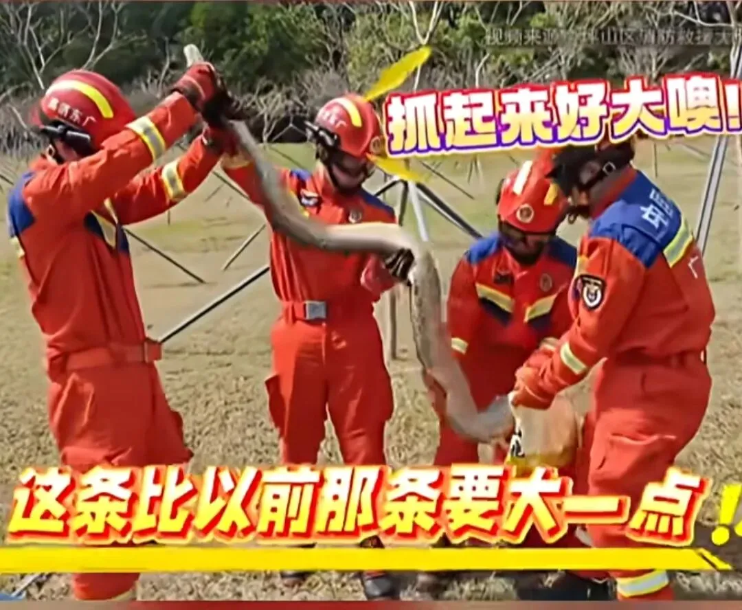 "这条比以前抓的都要大!"四名消防员在坪山区的草地上展开了一场惊险的"拔河比赛",对手是一条超过两米的缅甸蟒。捕蛇夹刚锁住蛇头,粗壮的蛇身就缠上了消防员的手臂,鳞片在阳光下泛着冷光。四人战术明确:一人控头,三人抬身,像给巨型拉链装袋似的,把挣扎的蟒蛇一寸寸塞进编织袋。袋口扎紧时,消防车都跟着晃了晃——"两米肯定有了!"最终这位"不速之客"被移交野生动物保护站,结束了一场春日惊魂。深圳消防特别提醒:遇见蛇类请保持"三不"原则——不围观、不投喂、不自学捕蛇技巧,关好门窗才是防蛇的正确打开方式。毕竟,你永远不知道下一只会不会比这条"坪山巨无霸"更壮观。冷知识:缅甸蟒在深圳属国家一级保护动物,私自捕捉可能面临法律处罚。#公众号创作