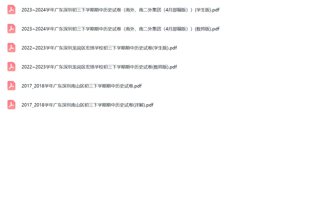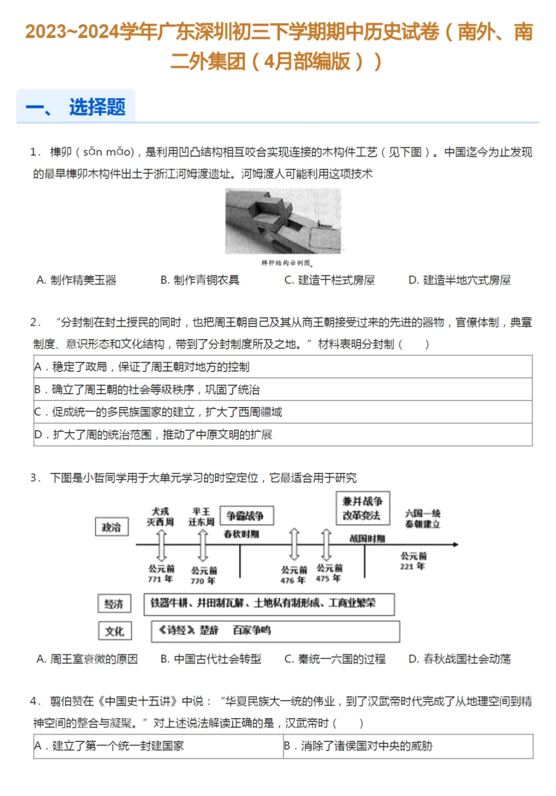 >6套2017-2024年广东深圳初三下学期期中历史试卷及答案解析