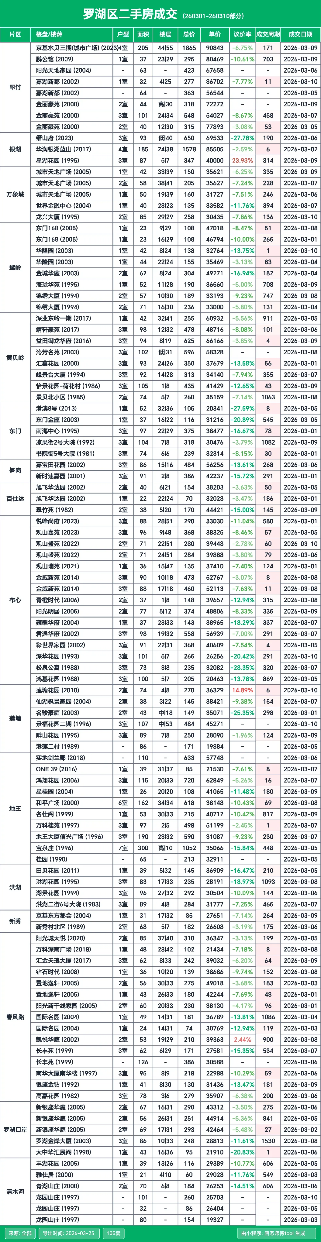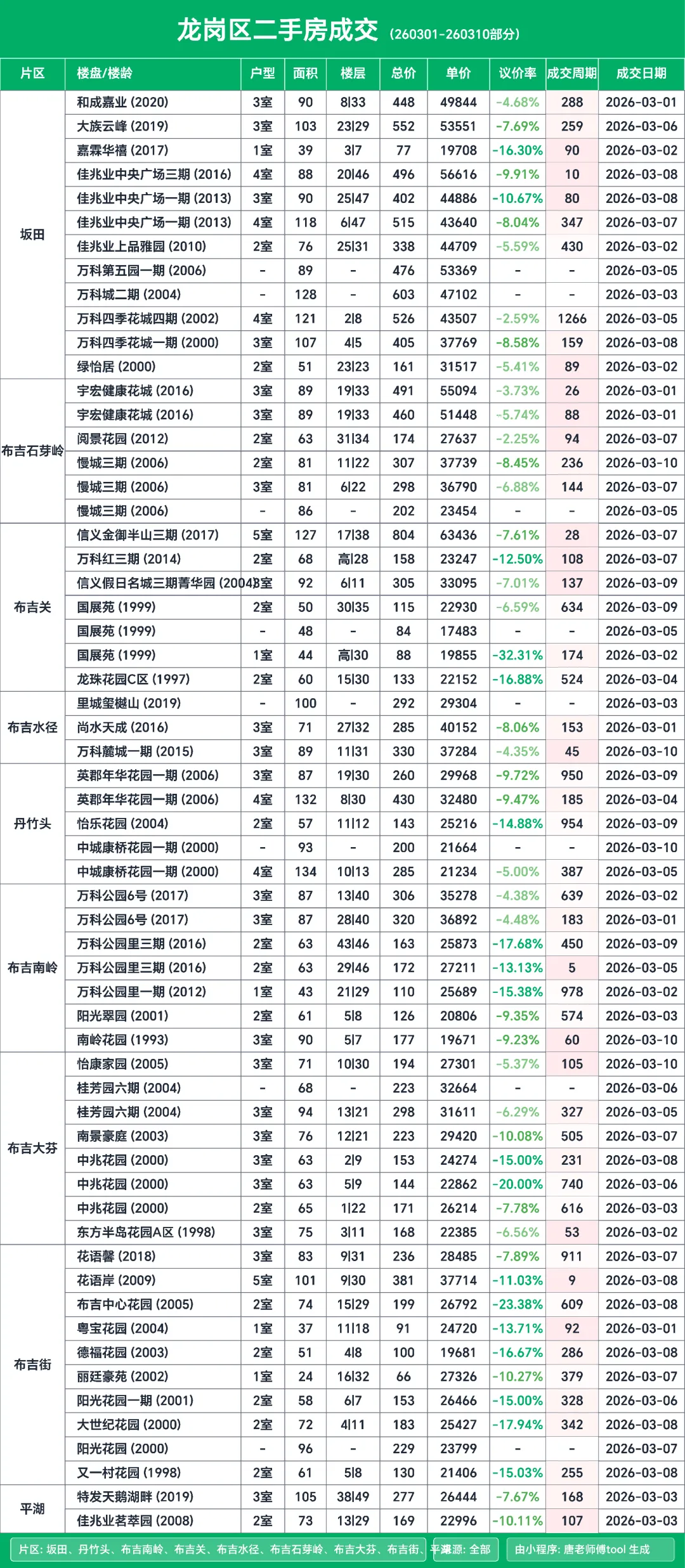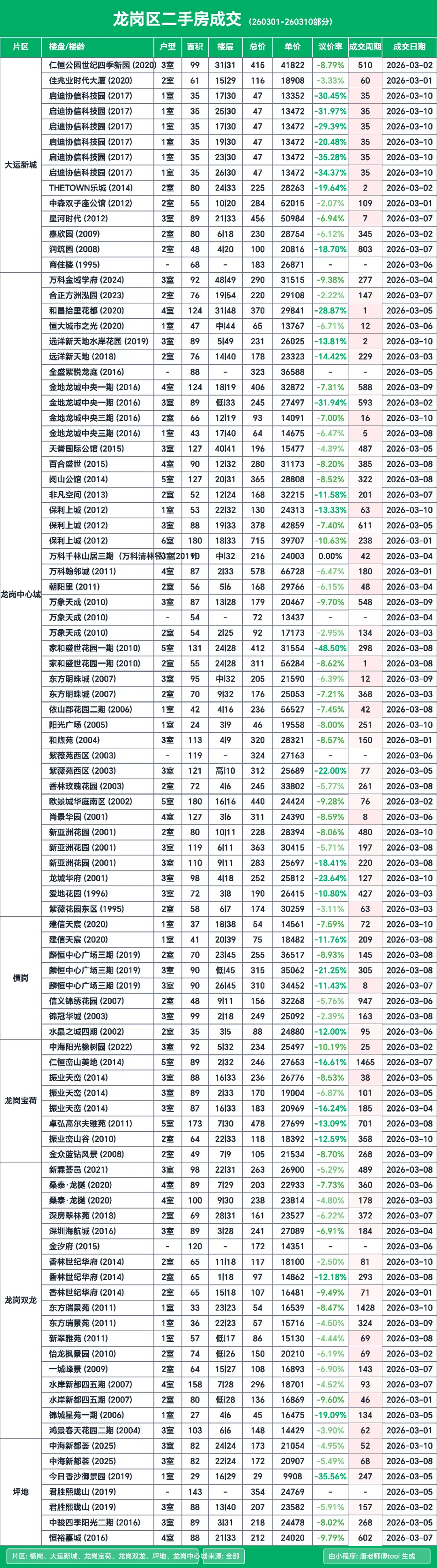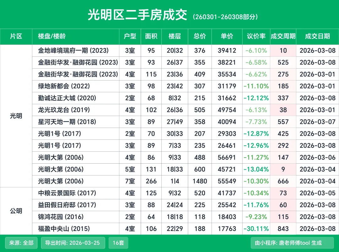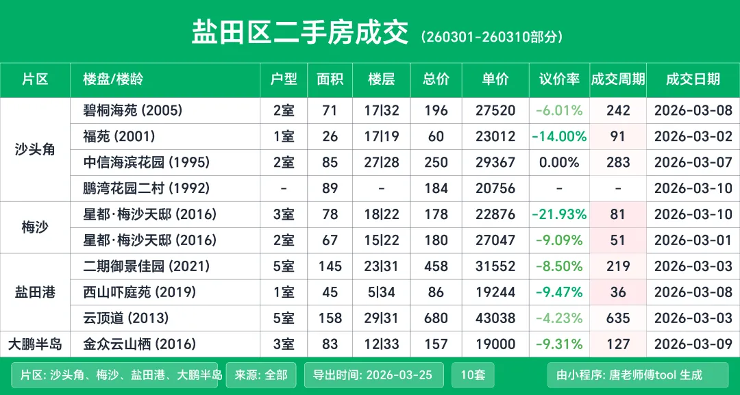 按惯例来给大家分享深圳二手房的成交明细,这次的统计周期是3月1日到3月10日这个期间的数据。
