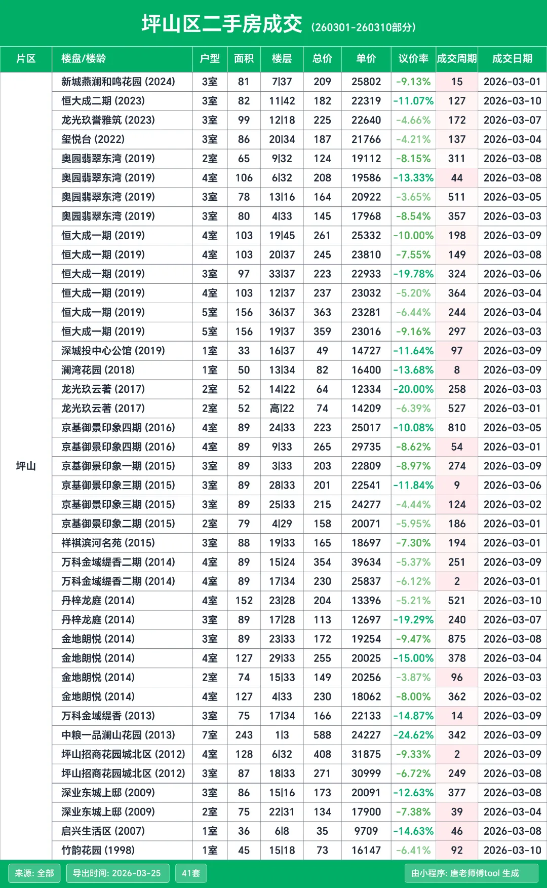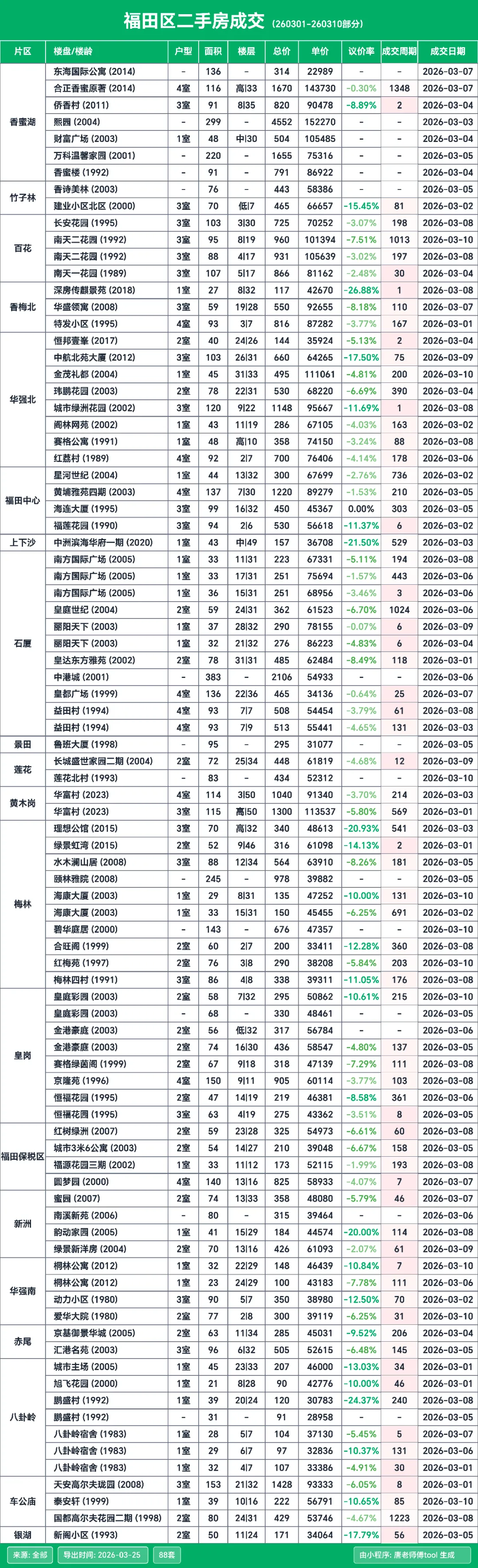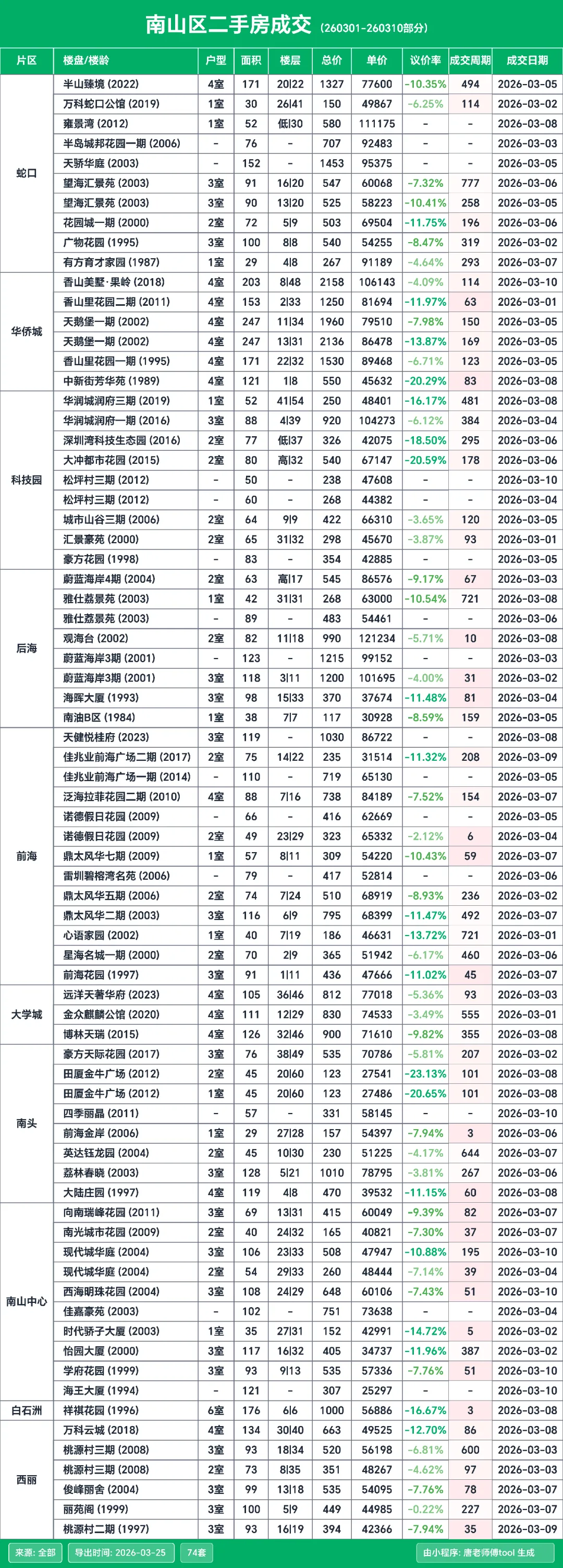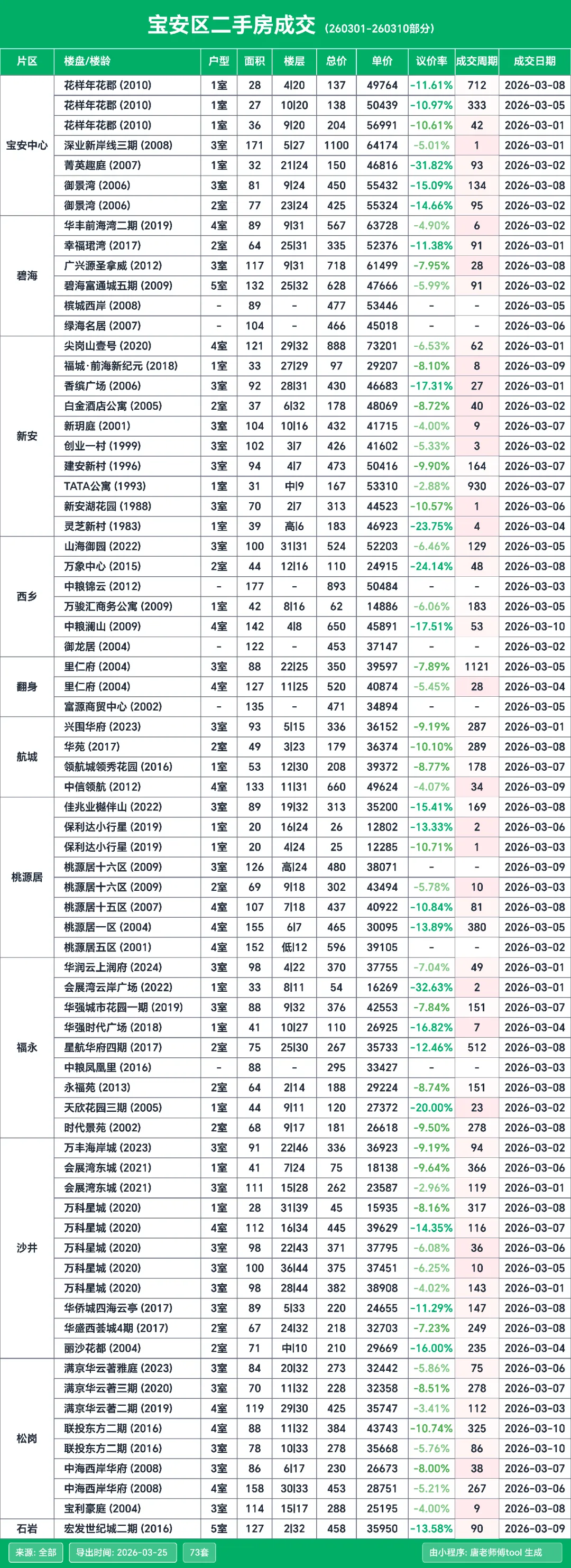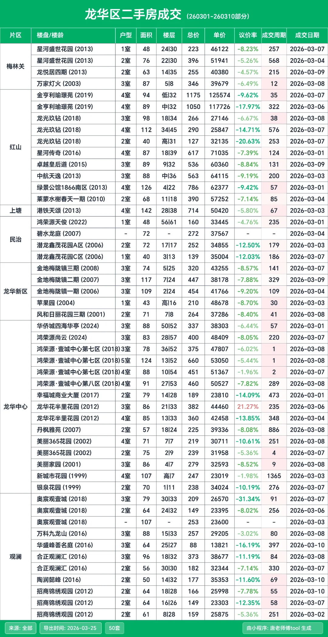 按惯例来给大家分享深圳二手房的成交明细,这次的统计周期是3月1日到3月10日这个期间的数据。