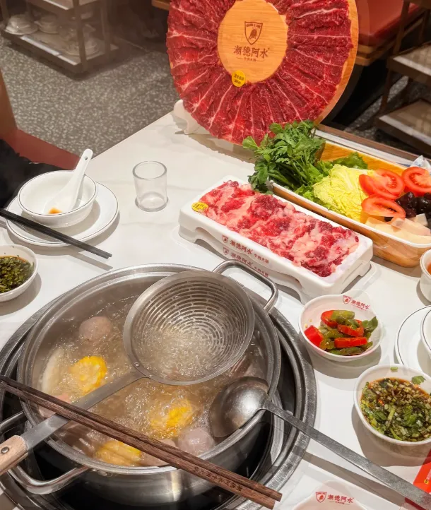 潮汕牛肉火锅到处有,先点吊龙,胸口油,嫩肩,按部位来,七上八下,蘸沙茶不失手。