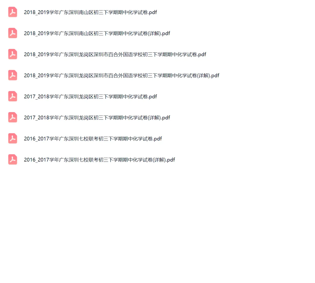 >8套2016-2019年广东深圳初三下学期期中化学试卷及答案解析