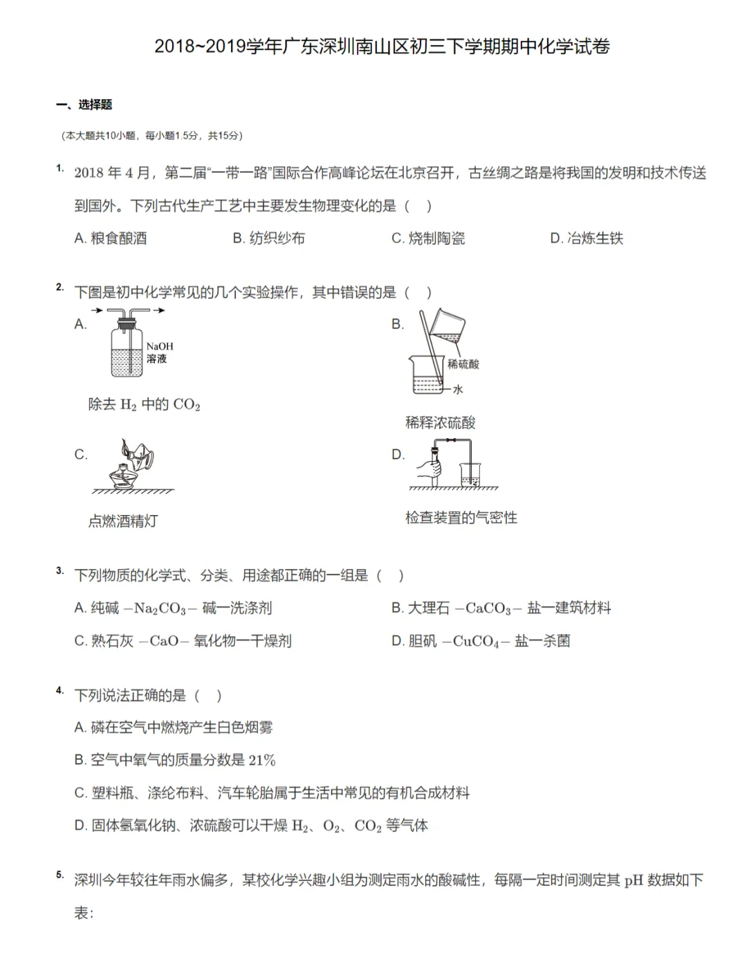 8套2016-2019年广东深圳初三下学期期中化学试卷及答案解析