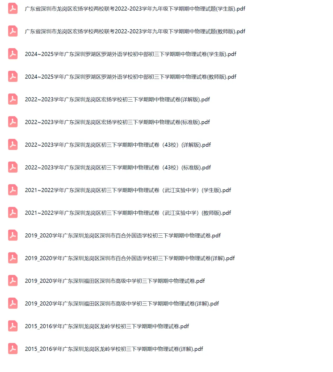 >16套2015-2025年广东深圳初三下学期期中物理试卷及答案解析
