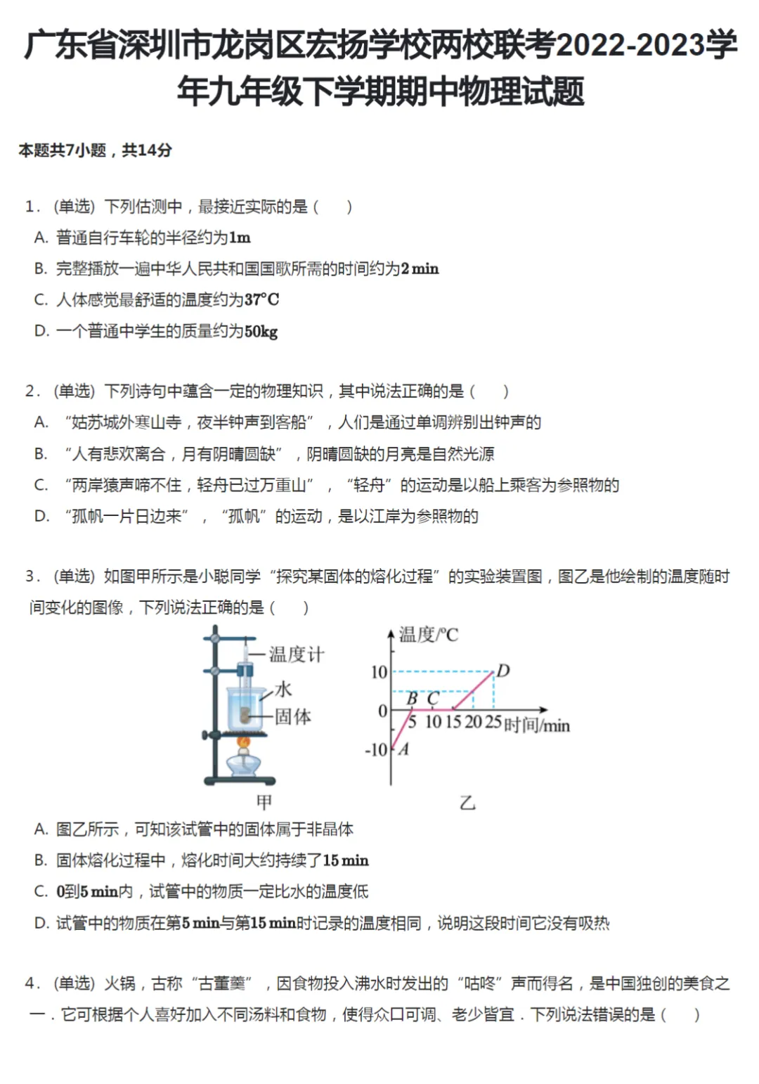 16套2015-2025年广东深圳初三下学期期中物理试卷及答案解析