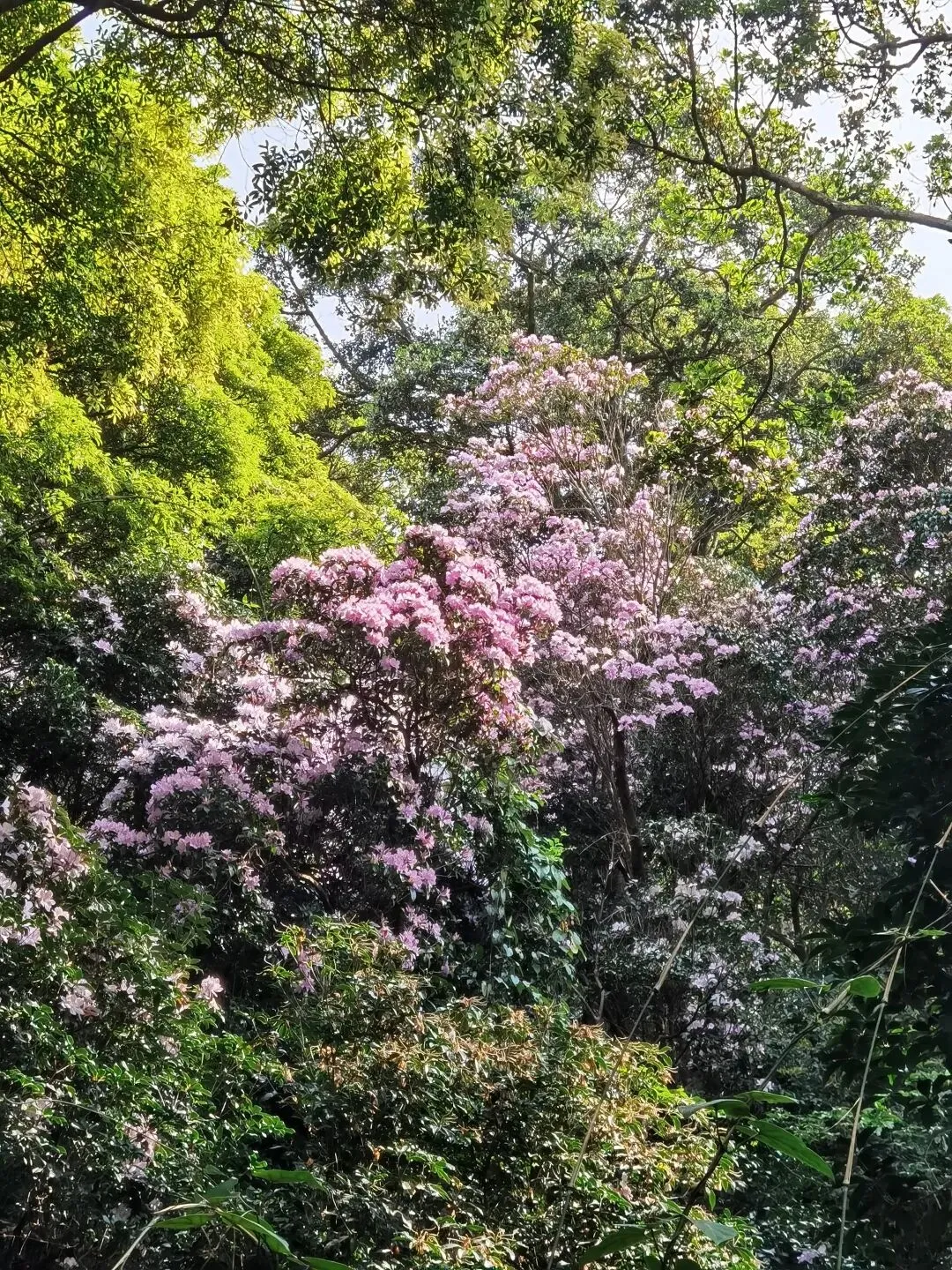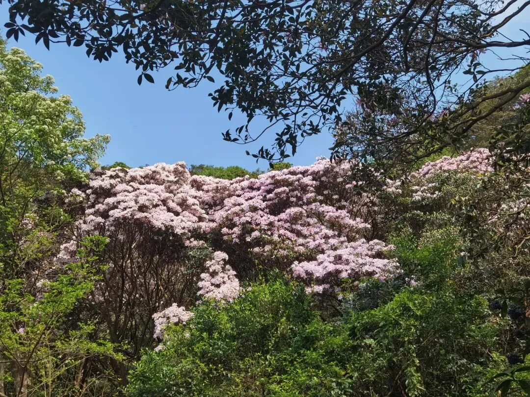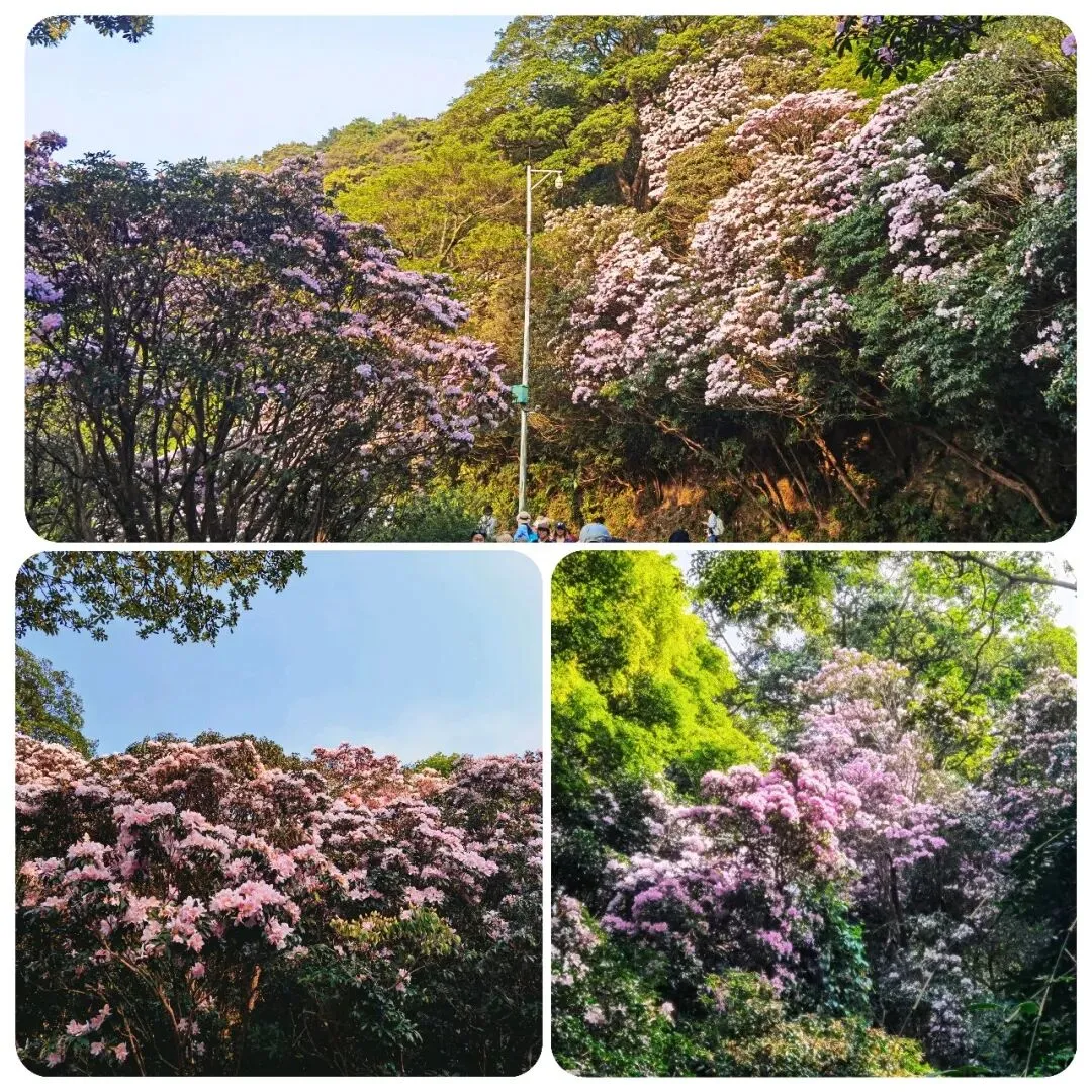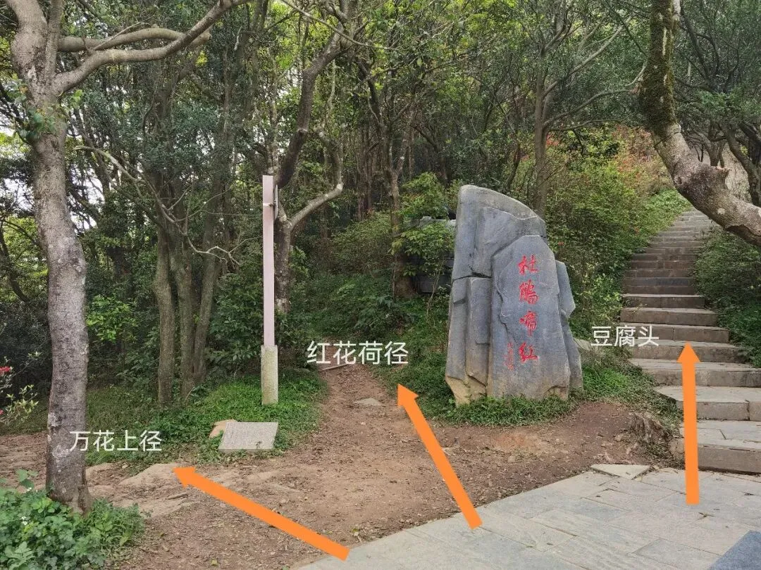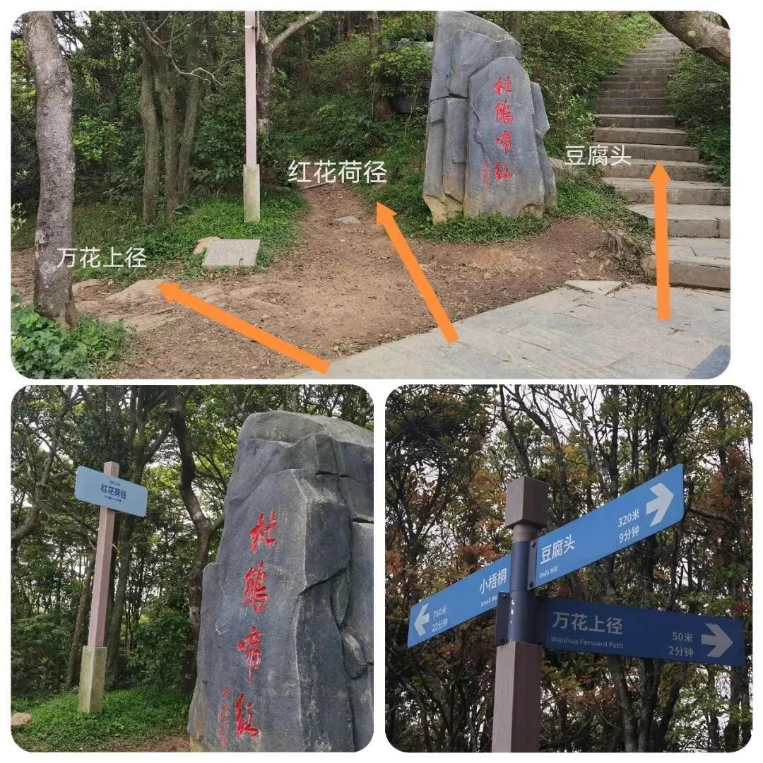 万花屏靠近杜鹃谷方向的入口对面有上山的通道:万花上径,可达豆腐头看映山红,想上大梧桐鹏城第一高峰的可以在蝴蝶谷上好汉坡到达,好汉坡反方向是豆腐头方向。以下是3月24日走过的路线,各看花景点基本覆盖: