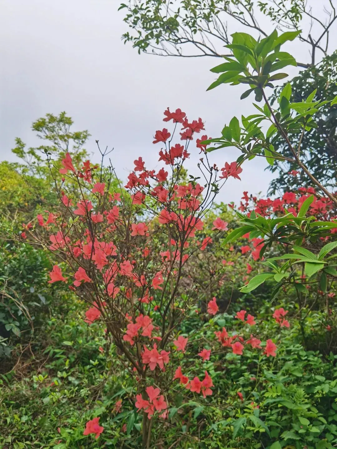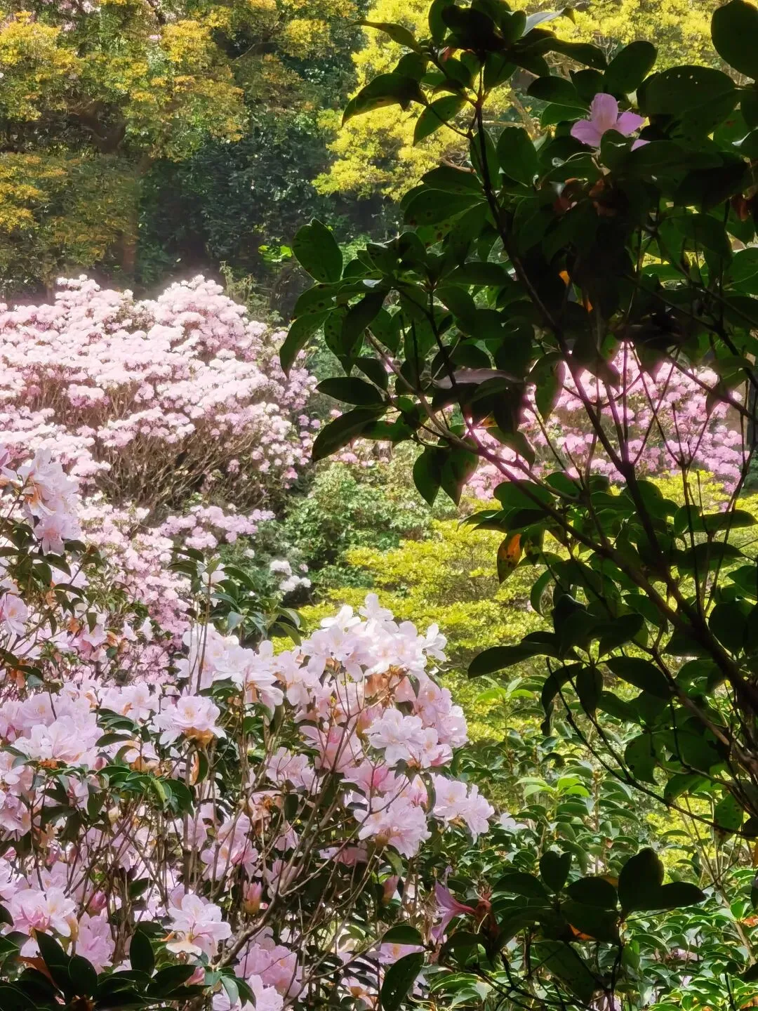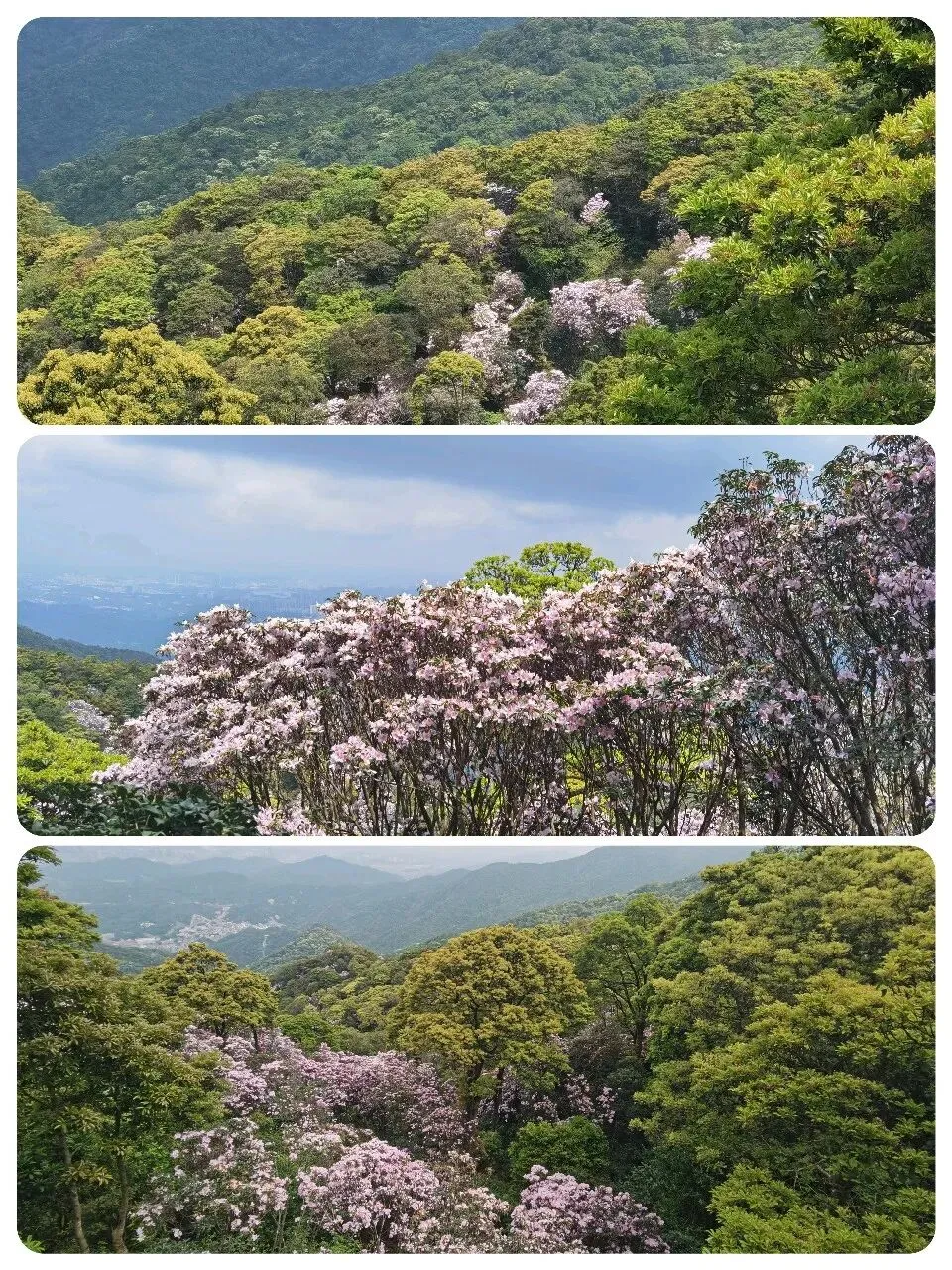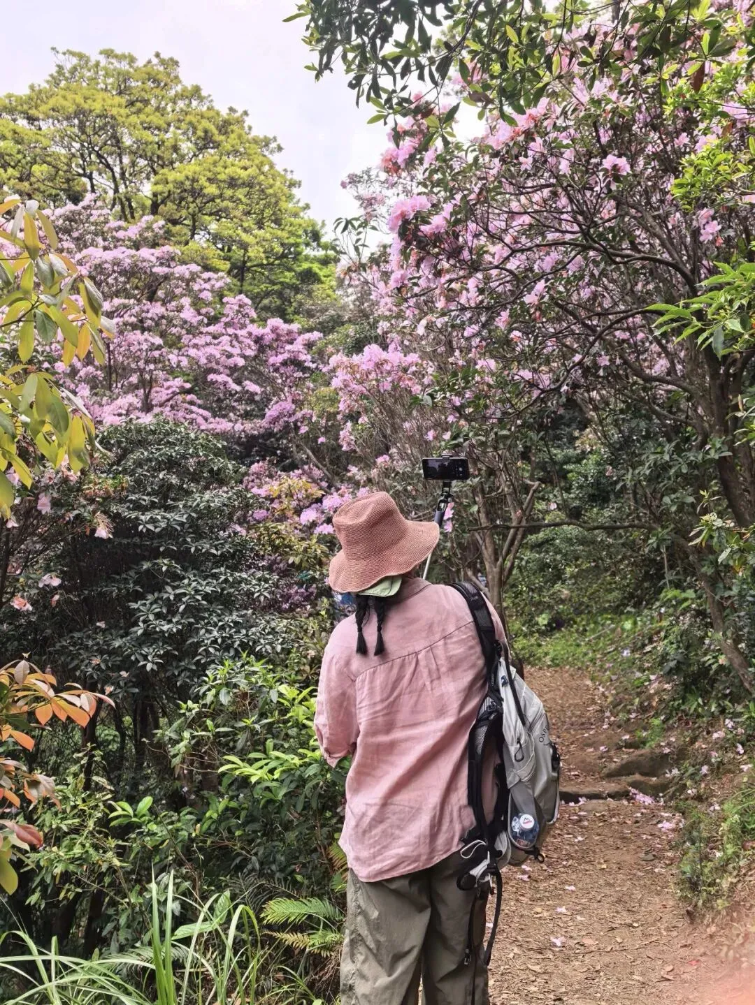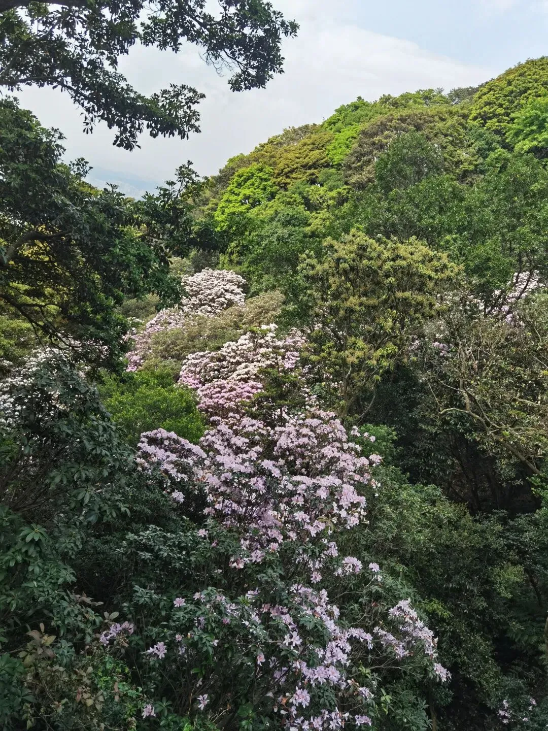 万花屏靠近杜鹃谷方向的入口对面有上山的通道:万花上径,可达豆腐头看映山红,想上大梧桐鹏城第一高峰的可以在蝴蝶谷上好汉坡到达,好汉坡反方向是豆腐头方向。以下是3月24日走过的路线,各看花景点基本覆盖: