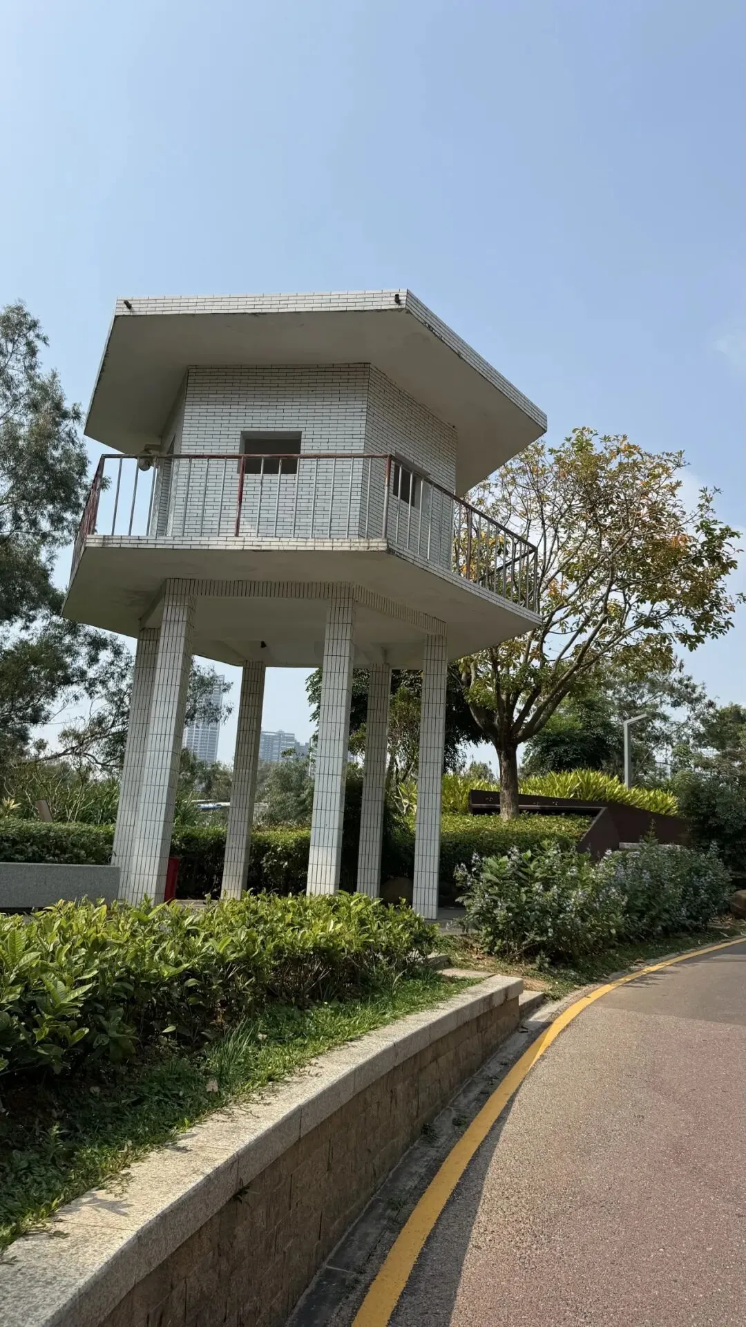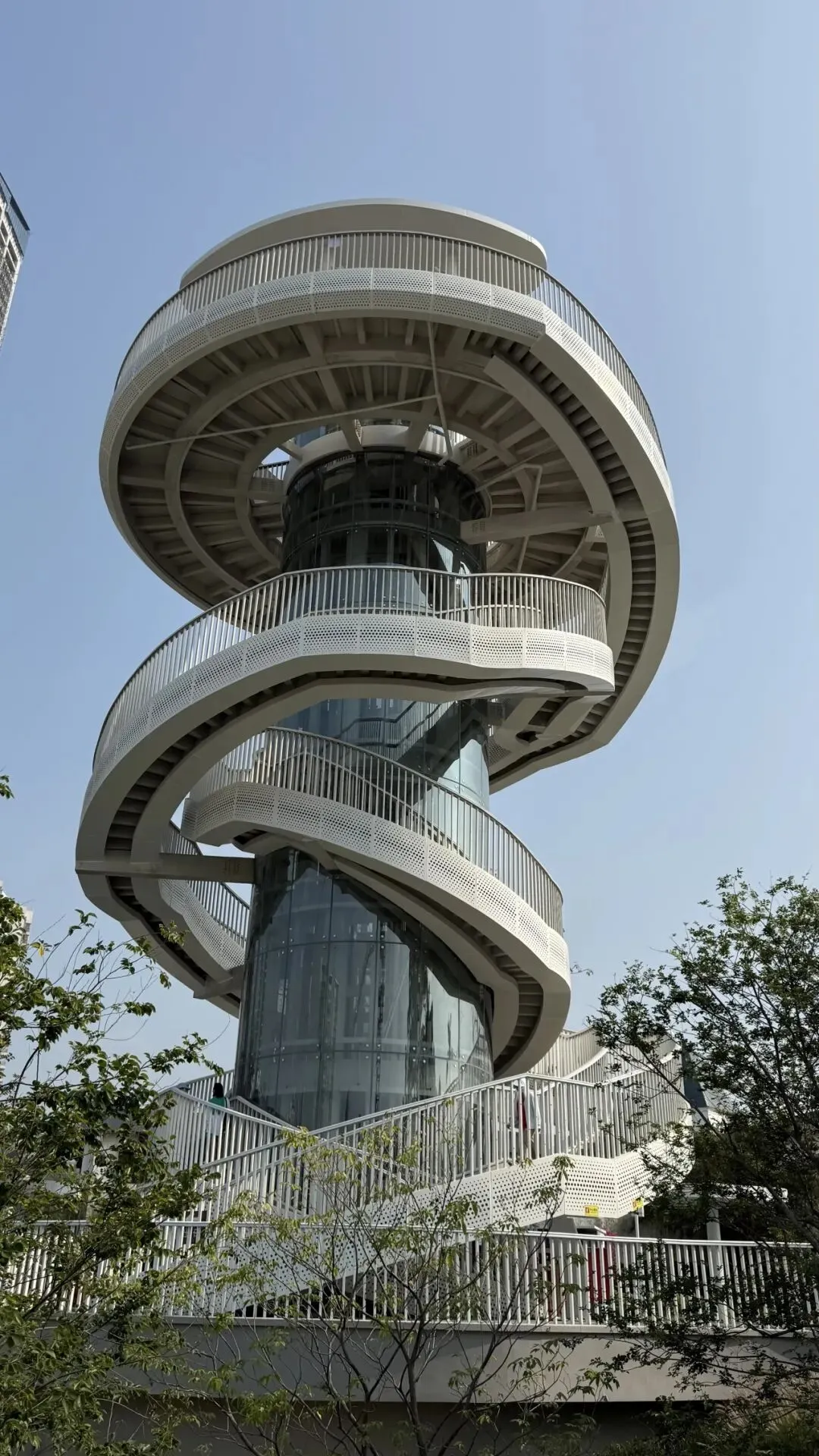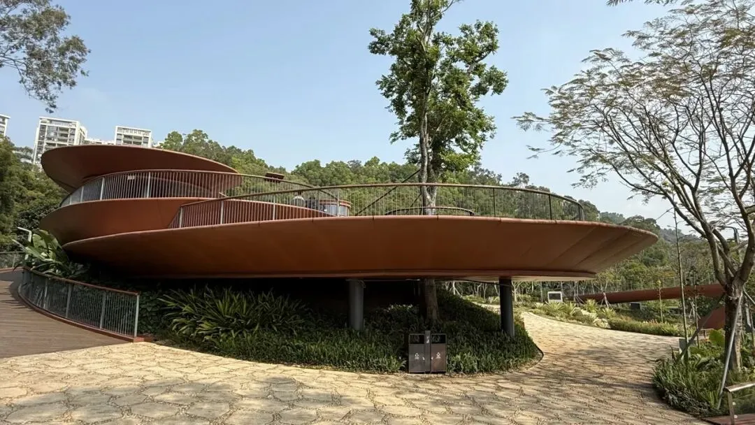 作为徒步起点,湖光塔的双螺旋造型极具设计感,最贴心的是配有电梯,不用费力攀爬就能轻松登顶。站在塔上,深圳水库的碧波、梧桐山的连绵山色尽收眼底,微风拂面,满眼绿意,是俯瞰罗湖山水的绝佳机位,随手一拍就是山水大片。