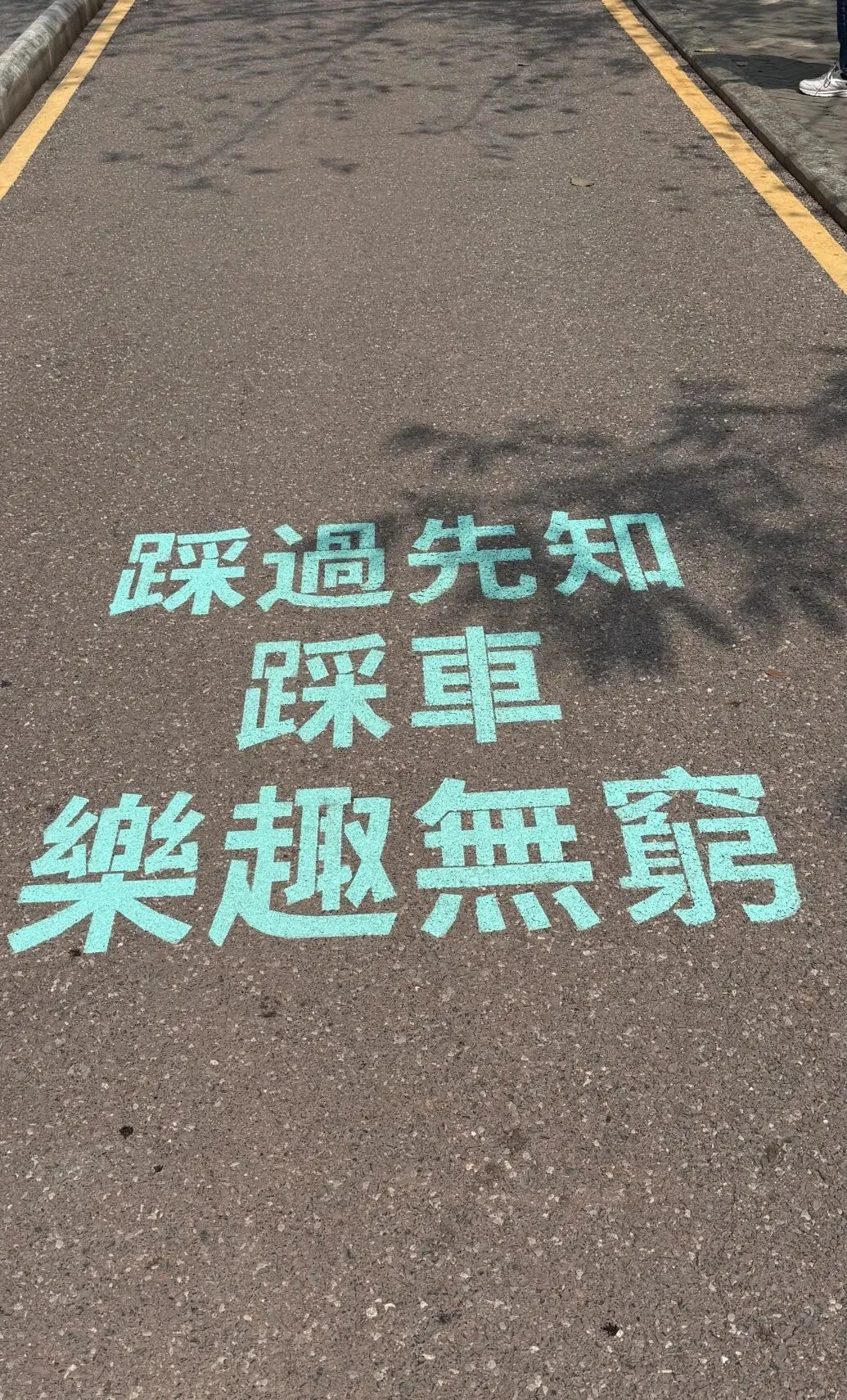 ✅有专门骑行道,路面有各种特色骑行标语