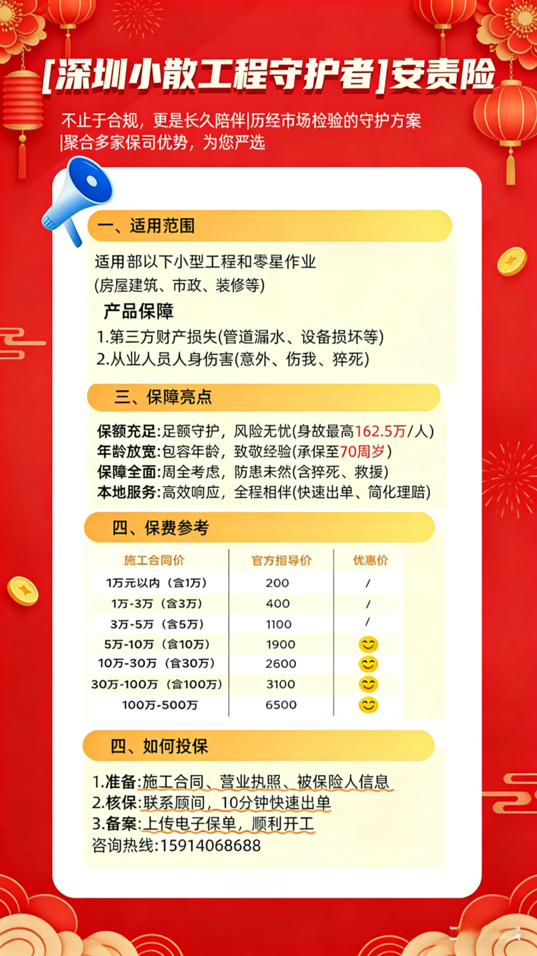 保障所有施工人员(含临时工、高龄工人,部分产品可保至 70 周岁),不得差别对待。