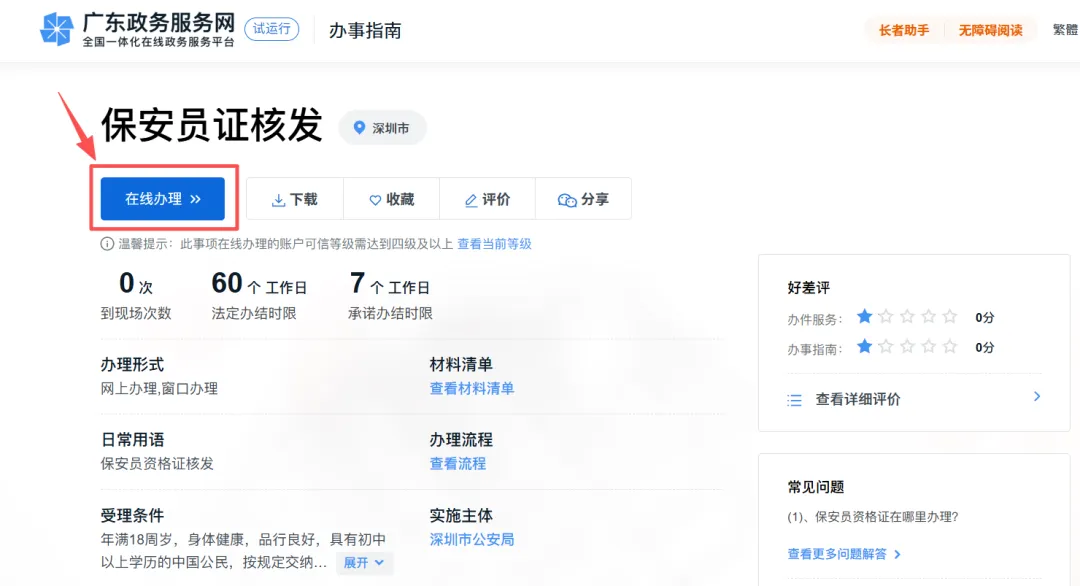 深圳保安员证报名全程线上操作,无需跑窗口,只要准备好相关材料,几分钟就能完成提交,重点注意这几点,避免走弯路:打开【广东政务服务网】,在搜索栏输入“保安员证核发”,选择“深圳市-市本级”,点击“在线办理”。用微信扫码登录,完成人脸识别后,跳转至“广东省保安服务监管信息系统”,即可开始填写报考信息。- 体检证明:近6个月内县级以上医院出具的体检报告即可,公司近期的体检报告也能复用,无需特意去医院。
