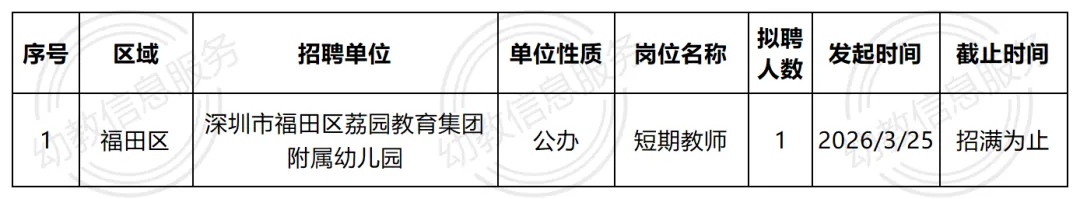 当前位置:首页>深圳>【教师招聘】招满为止深圳市福田区荔园教育集团附属幼儿园招聘公告|幼儿园招聘
