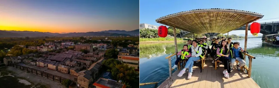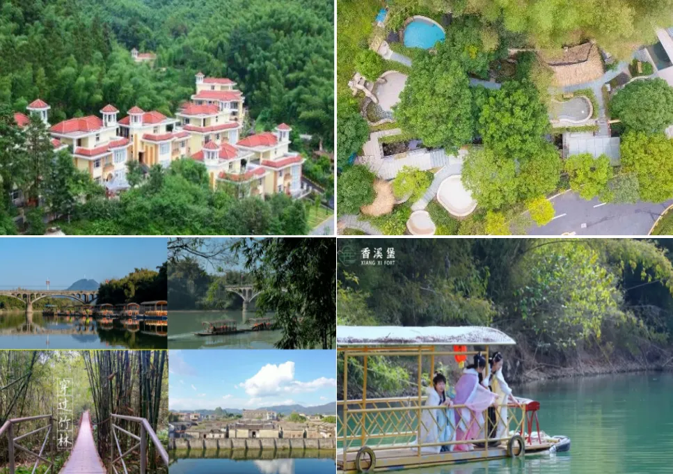 香溪堡【含竹筏漂游】旅游区位于惠州市龙门县,其独特的历史文化遗产和建筑风格,被誉为“华南第一古堡”,走进香溪堡景区,一片绿意映入眼帘,成片的竹海、繁茂的树林以及特色民宿院落,勾勒出一幅清新诗意的自然画卷;景区内的香溪河位于增江河上游,全长22公里。“大桥晨曦”便是香溪河美景之一,游客可乘坐竹筏游船,欣赏香溪河两岸美景。