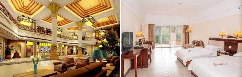 柏祥森林度假酒店坐落在风景优美的南昆山国家森林公园内、坐享国家4A级旅游区核心位置资源,酒店四面环山,空气清新;居于海拔千米的高度,临窗远眺,青山、竹海尽收眼底。酒店占地面积1.5万平方米,楼为九层,别墅区占地1.8万平方米,别墅群分高级别墅,豪华别墅,奢华别墅,3种类型,全酒店各类型客房共260多间,中、西餐厅;多功能会议室;棋牌室;大型户外游泳池等康休设施一应俱全。