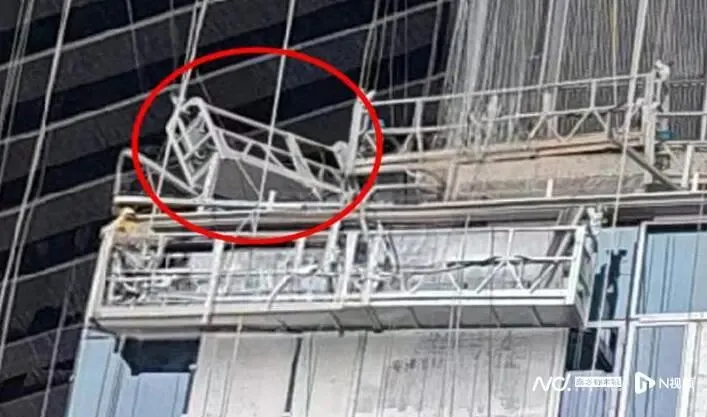 事发前涉事吊篮悬吊平台被卡阻的状况。图源:事故调查报告