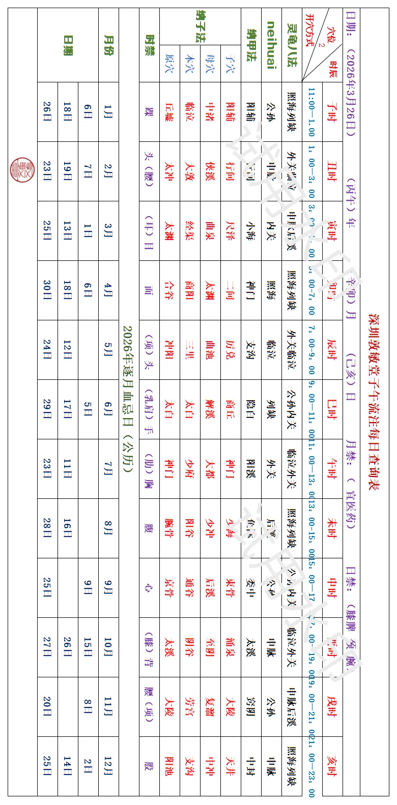 深圳敦敏堂《子午流注:今日开穴》 2026 3月26日