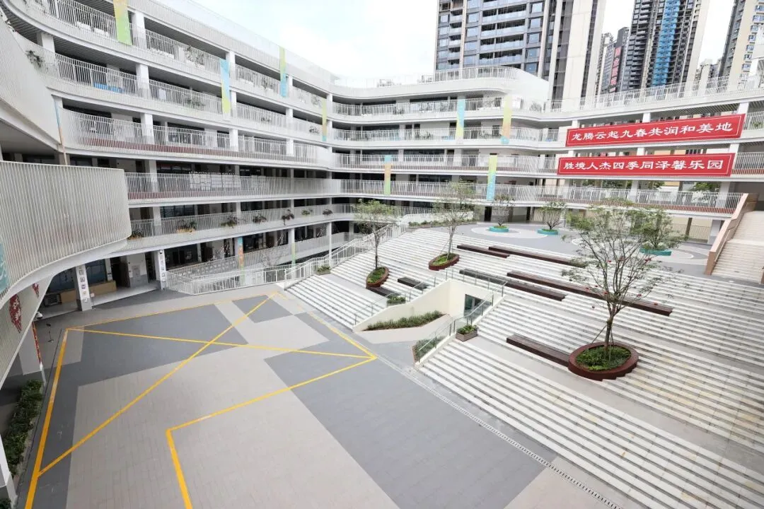 深圳市龙华区龙胜实验学校,是一座盖在地铁上的学校,坐落于大浪街道阳台山脚下。学校地处深圳地理中心和城市发展中轴的核心地段,距龙华中心区2公里,占地面积17023.02㎡,建筑面积38557.92㎡,是由龙华区委区政府、区教育局高标准建设的一所九年一贯制的精品公办学校。