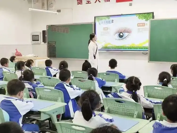 学校践行“健全人格 健康生活”的校训,为每位一、二年级学生配发坐姿矫正器,每学期开展2次学生视力检查,校医为学生开展“爱眼护眼”小课堂,培养学生正确的坐姿习惯,落实“预防近视 保护视力”的目标。