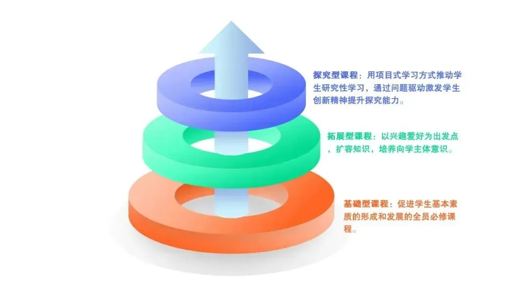 “六立”课程体系从基础课程、拓展课程、研究课程三个维度展开,建立适宜学生发展,发挥学生特长,拓展学生思维的教育推进范式。