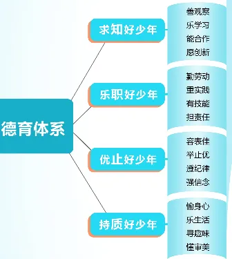 学校始终遵循“指向素养,指向成长”的育人思路,构建多元化评价体系,从校园精神文化固化象征——学校logo的外形出发,布局德育培养网格——龙之少年德育体系。从学生成长根基育苗,在知(求知创新 交流共进)、职(责任担当 技能实践)、止(行止适度 素养信念)、质(身心健康 尚美寻趣)四个人格发展维度发力,结合学生成长档案等评价手段勾勒毕业生形象。