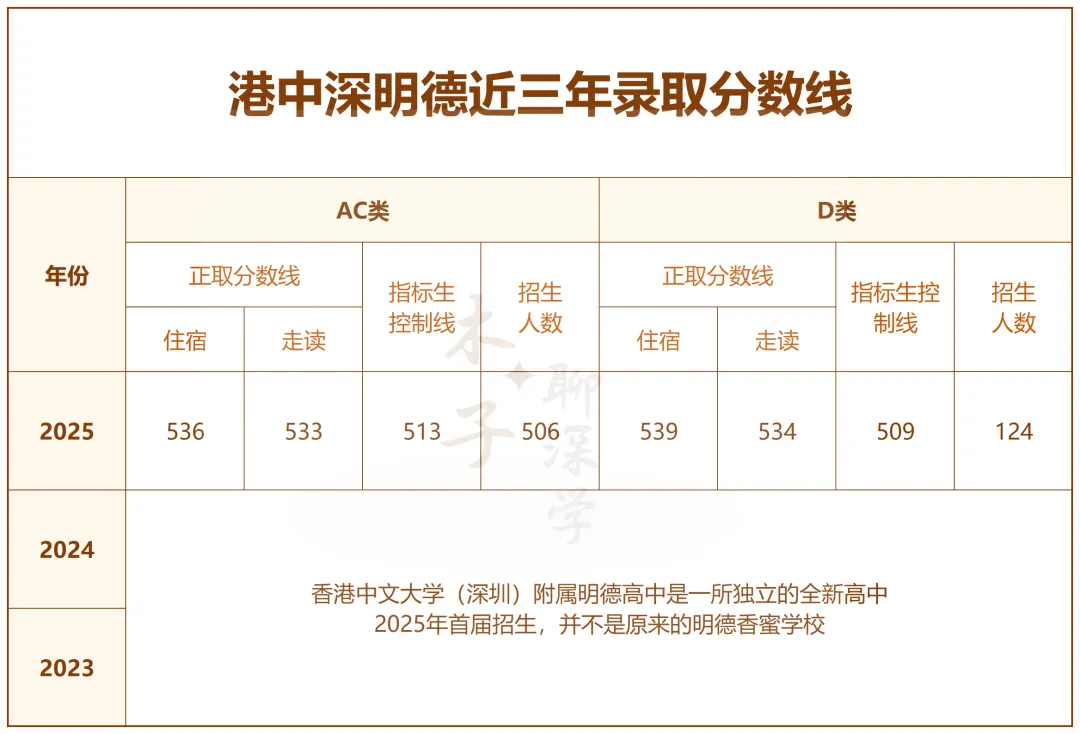 2025年1月深圳明德实验学校(集团)与香港中文大学(深圳)基础教育集团共建原深圳市第二十五高级中学,后更名为香港中文大学(深圳)附属明德高级中学简称为港中深明德,校园占地面积2.74万平方米,建筑面积7.2万平方米。