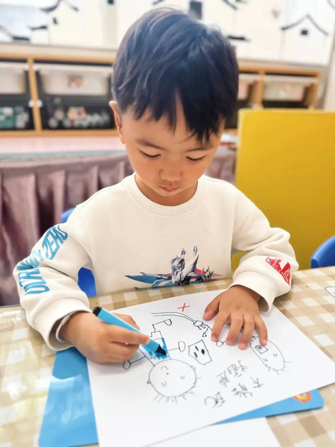 孩子们还拿起画笔,进行安全知识画一画,用绘画的形式表达自己学到的安全小知识,在看一看、说一说、画一画中,真正做到懂安全、记安全、守安全。