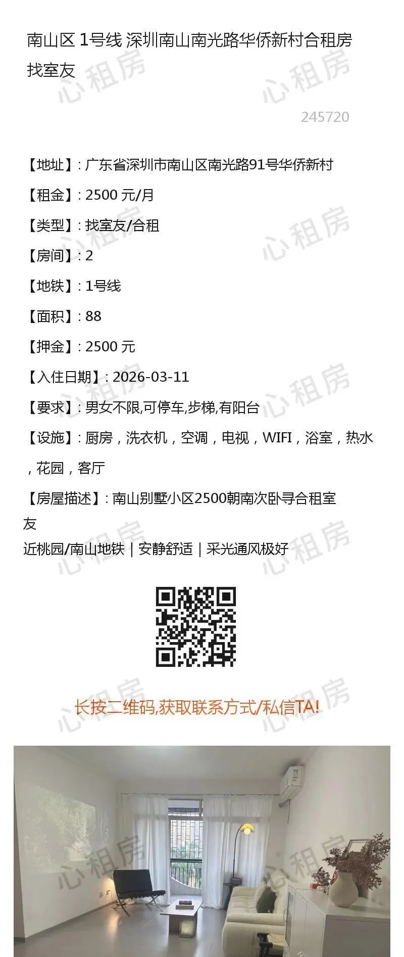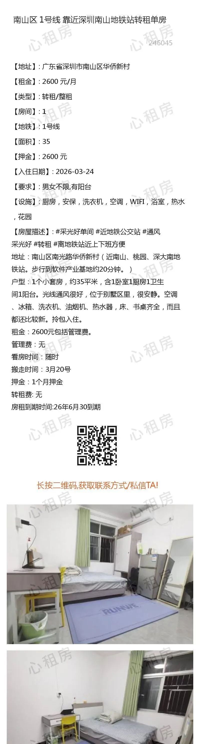 深圳租房【南山4则】房源①:1号线靠近深圳南山地铁站转租单房2600元/月;房源②:.........