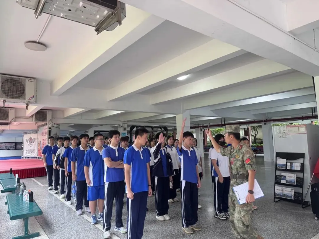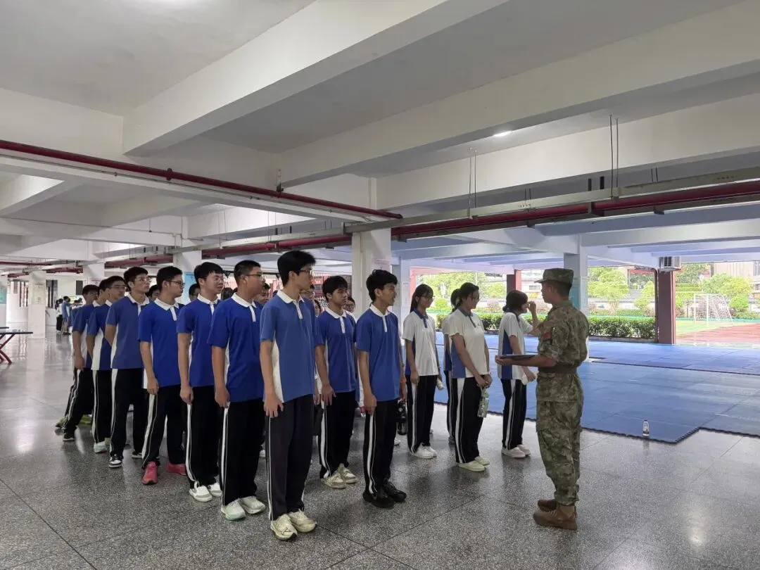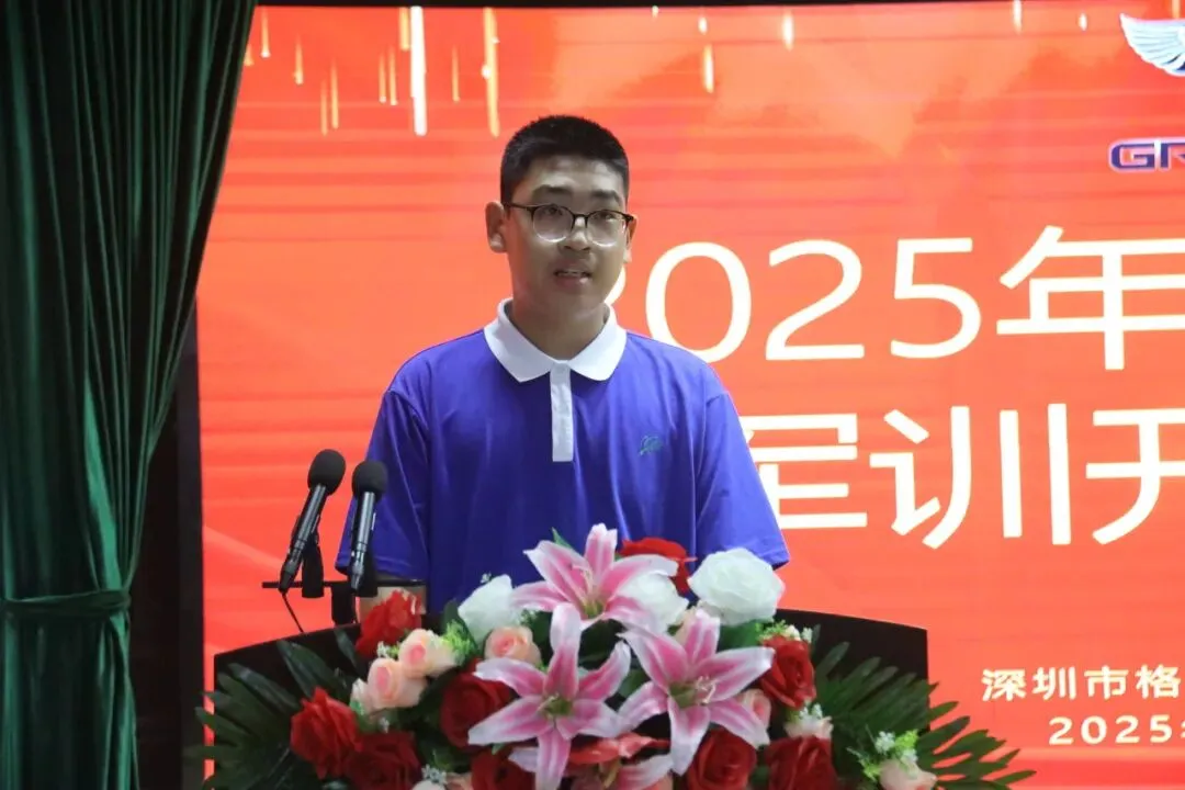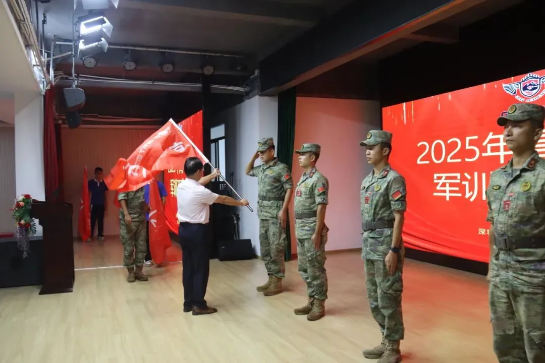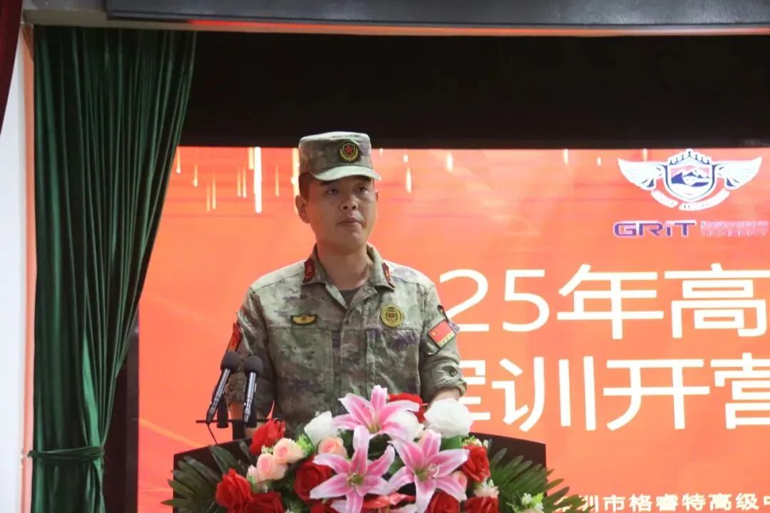 最后,龙华区教育工委派驻格睿特高级中学第一书记尹国府同志庄严宣布:"深圳市格睿特高级中学2025届高一新生军训暨国防教育活动现在开始!"