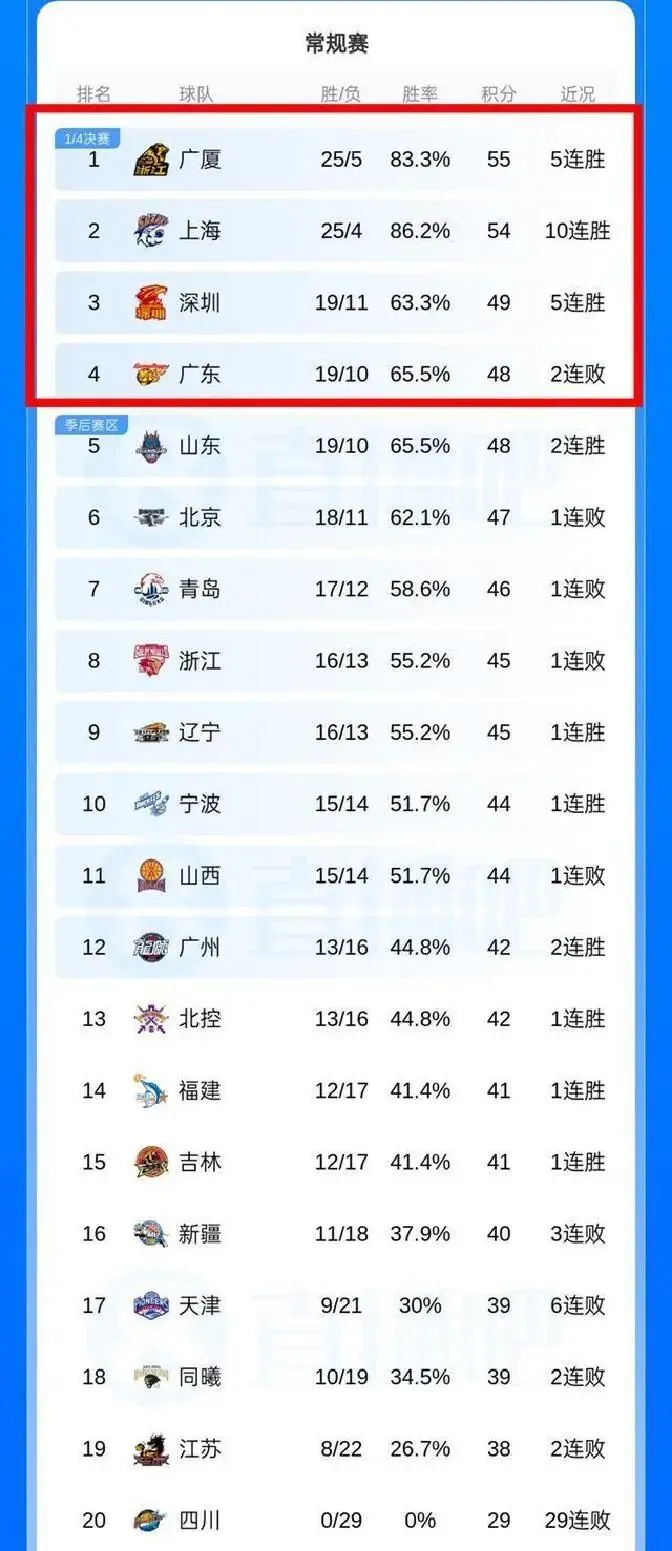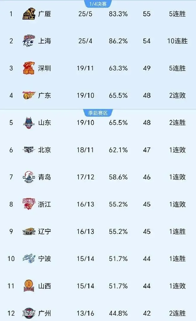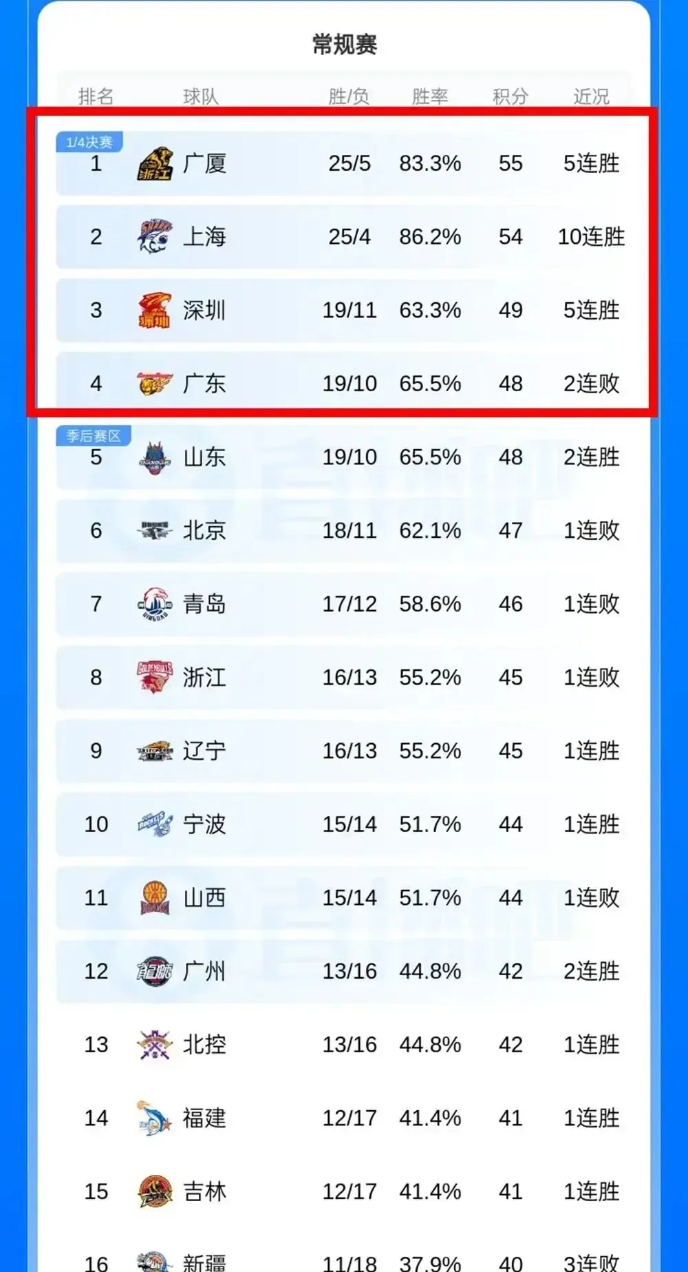 >CBA疯狂一夜!深圳大胜升第三,广厦队五连胜登顶,最新积分出炉