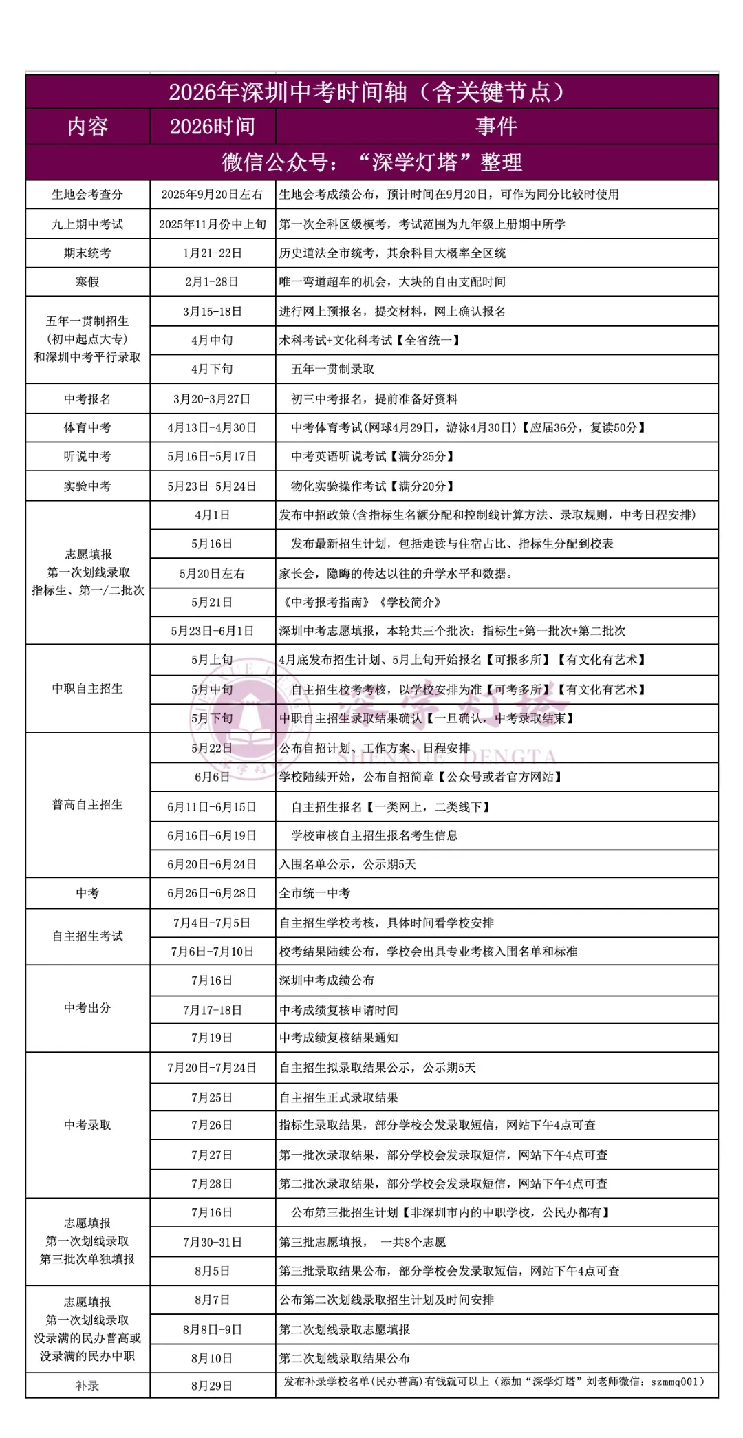 这份 《深圳2026年中考时间轴》 ,就是帮你把接下来这一年,每一个关键节点都理清楚。