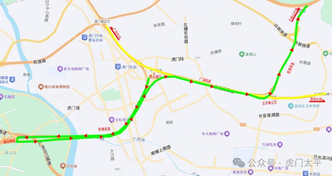 关闭太平收费站虎门往深圳方向入口。
