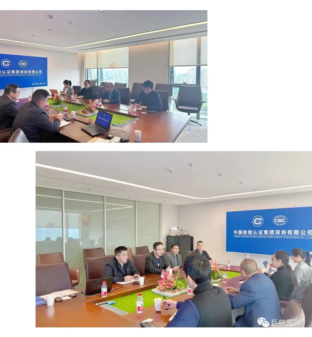 2023年2月8日,巨航国际总经理胡总带领商务团队拜访了中国检验认证集团深圳有限公司,受到中检潘总和闫总等领导的热情接待,双方进行了友好而热烈的交流,增进了互相了解,并就进一步加强合作进行了初步的沟通,双方均表示,希望在现有合作的基础上,推进更广泛和深入的合作。会上,中检闫总对深圳中检的发展历程、内部业务架构及业务内容作了详尽的介绍。中国检验认证集团(中检集团、CCIC)是经国家质量监督检验检疫总局(AQSIQ)许可、国家认证认可监督管理委员会(CNCA)资质认定、中国合格评定国家认可委员会(CNAS)认可,以“检验、检测、鉴定、认证”为主业的独立第三方检验认证机构。其深圳公司是中国检验认证集团的二级子公司,成立于1988年。经过近30年的稳步发展,深圳CCIC始终致力于“质量、安全、健康、环保”领域,为客户提供“一站式”综合解决方案。
