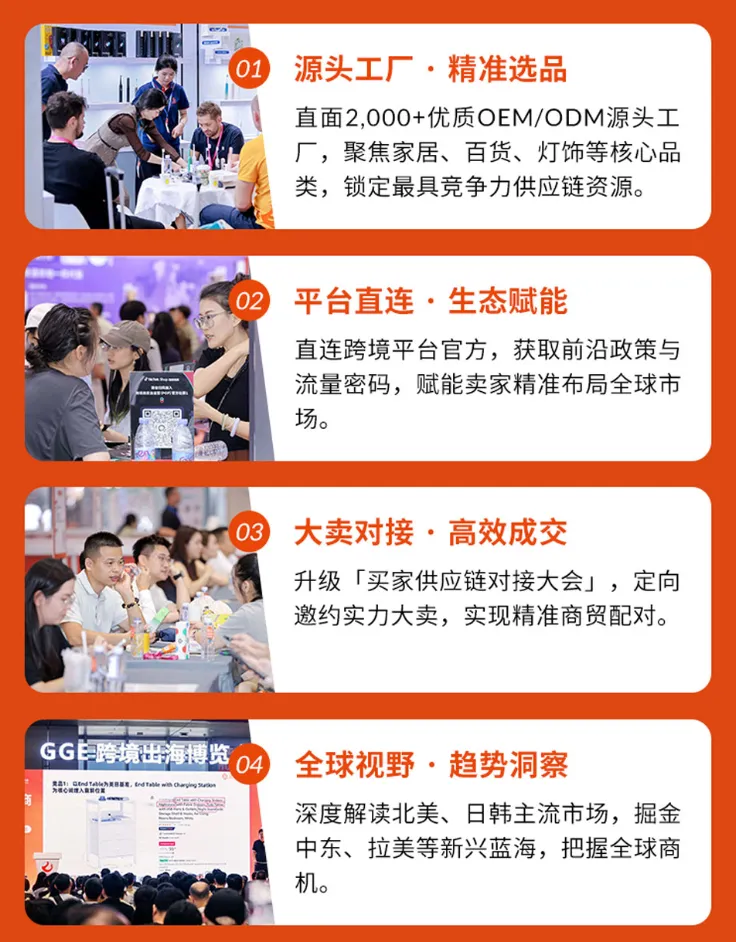 2026年4月25日至28日,GGE跨境出海博览会暨第11届OEM/ODM源头工厂展将于深圳国际会展中心(宝安)举办。本届展会全面覆盖电子家电、潮流时尚等跨境全品类,以“实效对接”为导向,贯通工厂、卖家、平台及服务商全链路,打造高效精准的选品撮合平台,成为推动中国制造出海、链接全球跨境生态的重要枢纽。