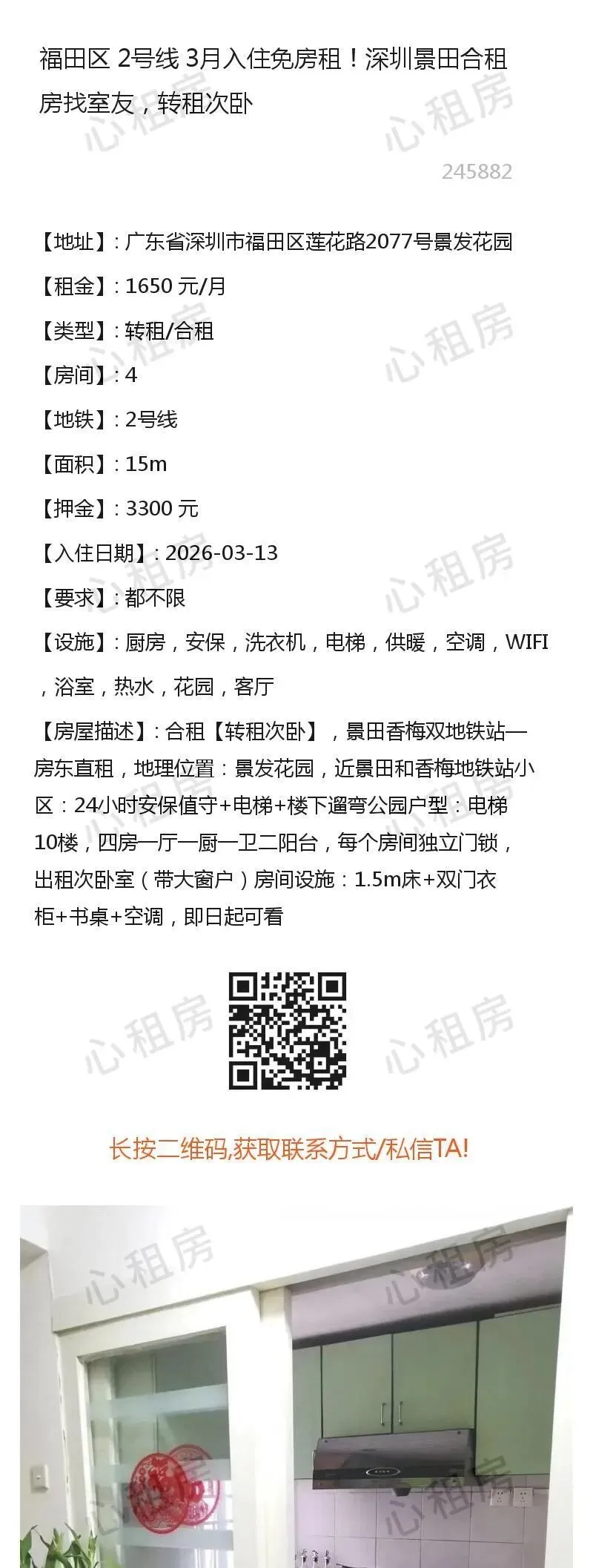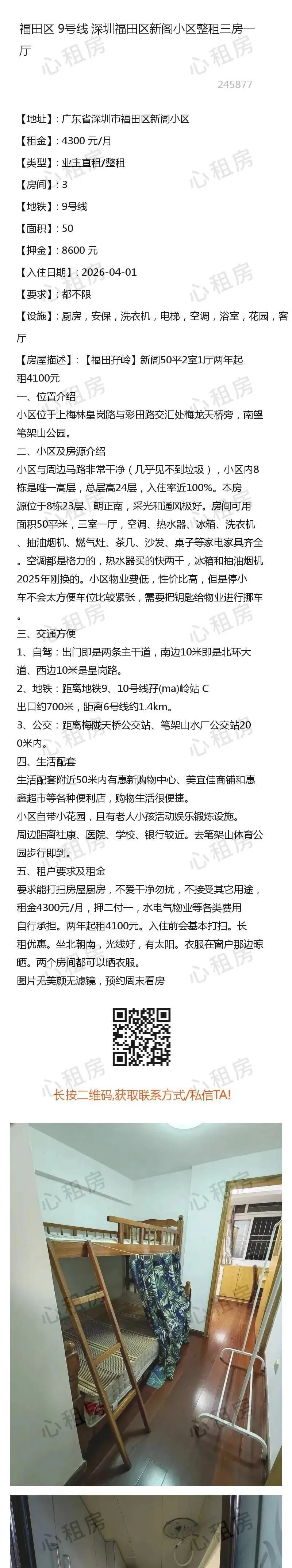 深圳租房【福田2则】房源①:2号线深圳福田景田合租房找室友转租次卧1650元/月;房源②:.........