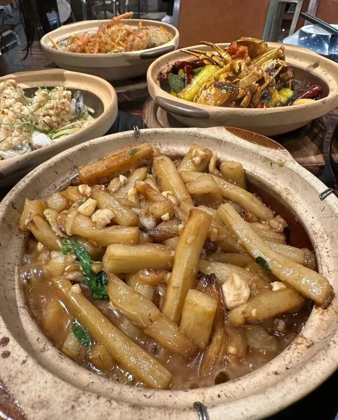 我们点的基本都是下饭菜 , 你懂的 , 就是那种汁水拌饭特别香的 , 什么炒蛏子、爆炒花蛤、姜葱炒蟹 , 每一道都是实实在在的料。 当然如果你要点那种大螃蟹 , 价格肯定会往上走一些 , 但日常吃个家常海鲜 , 这个价位真的很够了。