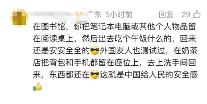 网友 timothyLaw:“在图书馆,你把笔记本电脑或其他个人物品留在阅读桌上,然后出去吃个午饭什么的,回来还是安安全全的。”