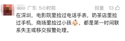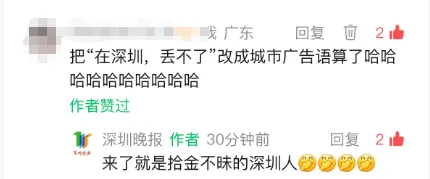 评论区里有热评说:“干脆把深圳的城市口号改成‘在深圳,丢不了’算了!”