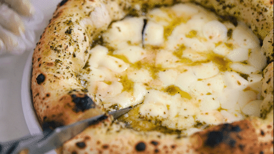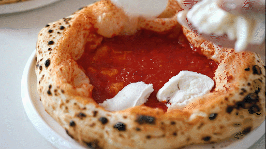 如果想尝试那不勒斯披萨最本源的风味,不妨试试“Bufalina”。经典的番茄芝士饼底搭配意大利进口水牛芝士与罗勒叶提香解腻,无多余配料。烘烤过后水牛奶酪会渗入饼底,口感绵密湿润,奶香浓郁。