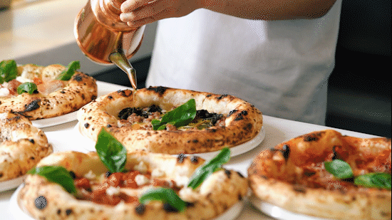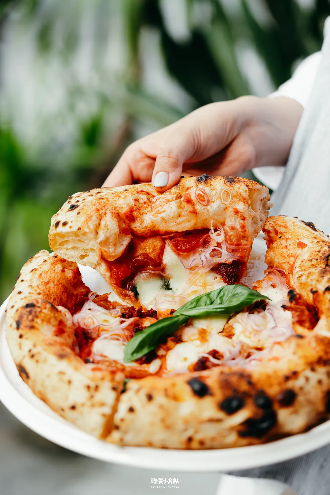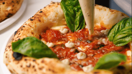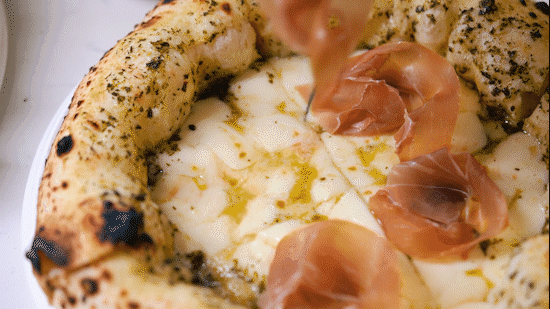 面团用的是意大利披萨学院专属配方,每天坚持低温慢发不偷懒,发酵后湿度高达70%,烘烤之后软韧且有空气感,吃着嚼劲十足。
