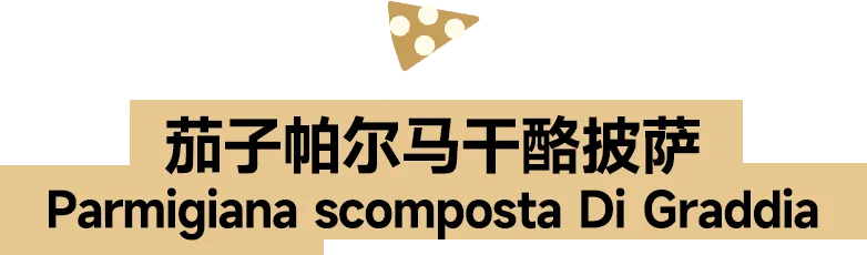 把意大利国民家常菜“茄子帕尔马干酪”做成披萨了。主厨特制的三茄酱融合红番茄、黄番茄&茄子,保留了大块茄子吃着绵密酸甜。搭配辣菠萝伏洛干酪与帕玛森干酪双重咸香,上桌前会点缀茄子奶油,清爽不腻,属于玩花样但不踩雷的口味。