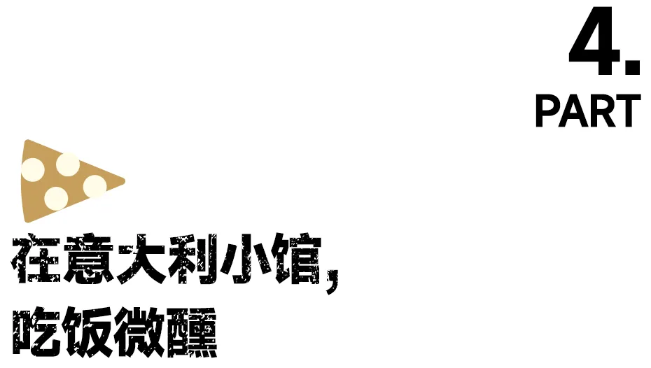 傍晚时分,灯光微暖,伴着披萨的香气,摇晃着手里的高脚杯,很松弛,就安安静静享受这一时刻吧。