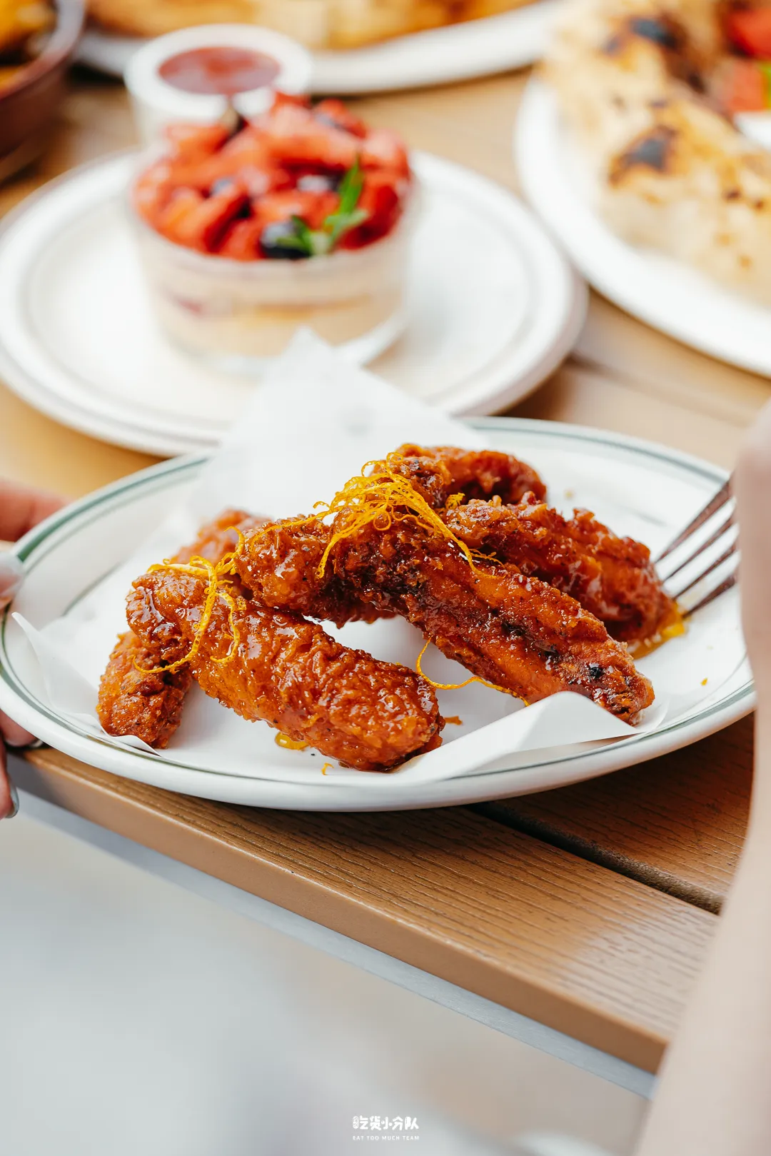 春天被微风轻拂,在这样的意大利小馆户外坐着,也是件挺舒服的事。从开胃的小吃,到饱腹的披萨,喝一口小酒,就能chill整个午后。香橙蜂蜜鸡中翅