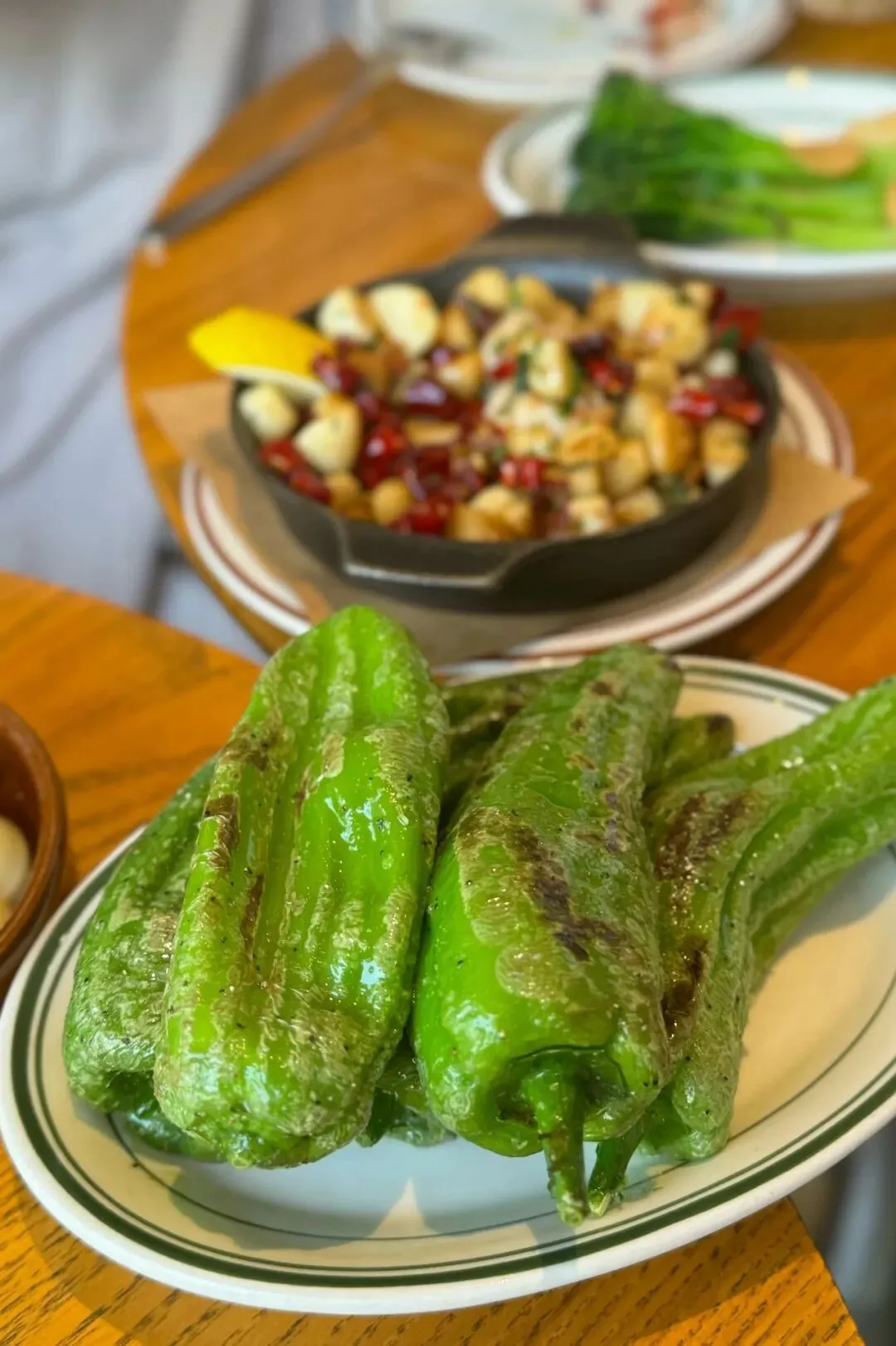 脆皮椒煎烤至微焦的状态,保留脆嫩的口感,仅需撒些简单的海盐即可上桌。入口清爽解腻,瞬间打开食欲。