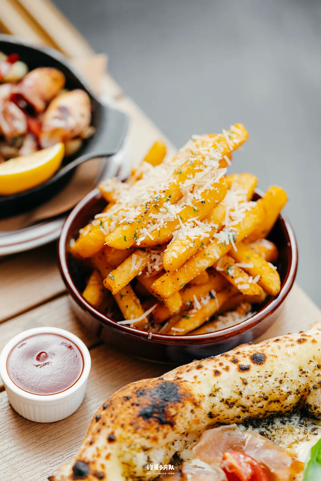 经典番茄芝士底酸甜开胃,烤熟后倒入刚刚炸出锅的脆薯条+辣芝士香肠,吃着咸香酥脆,颜值还高。