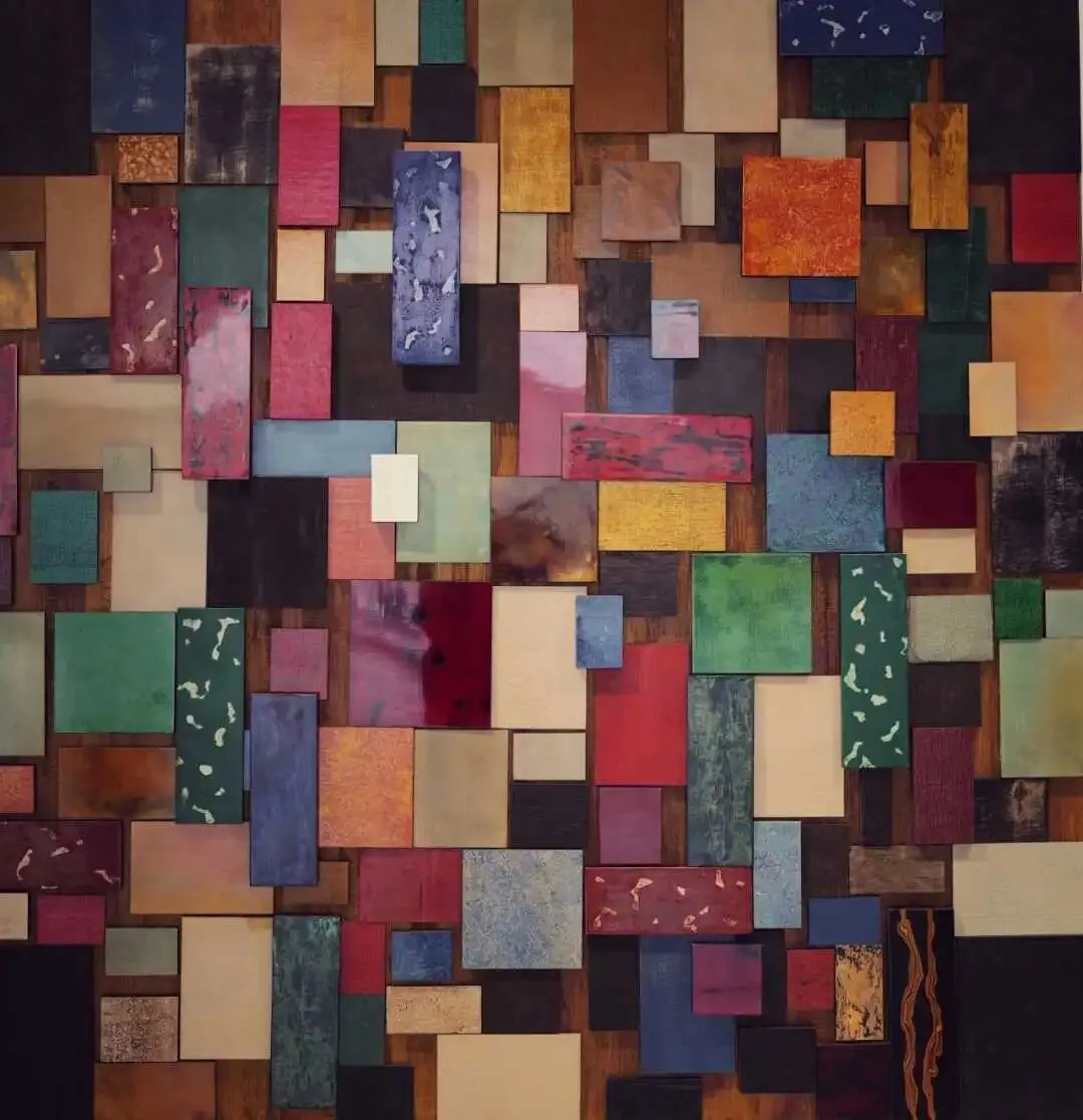 利落黑格间盛放着白、黄、红、蓝