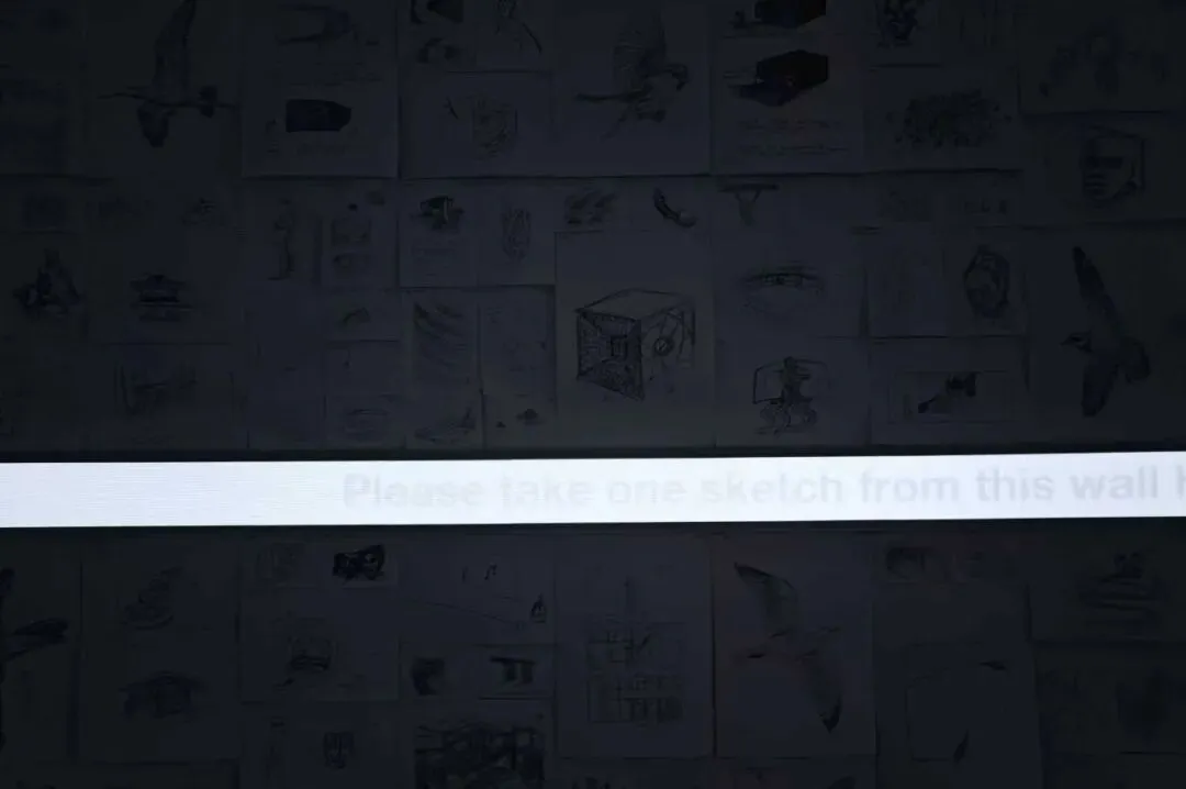 环形展厅挂满蝴蝶、飞鸟、人体、城堡的速写