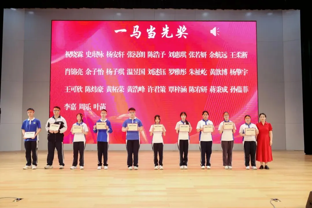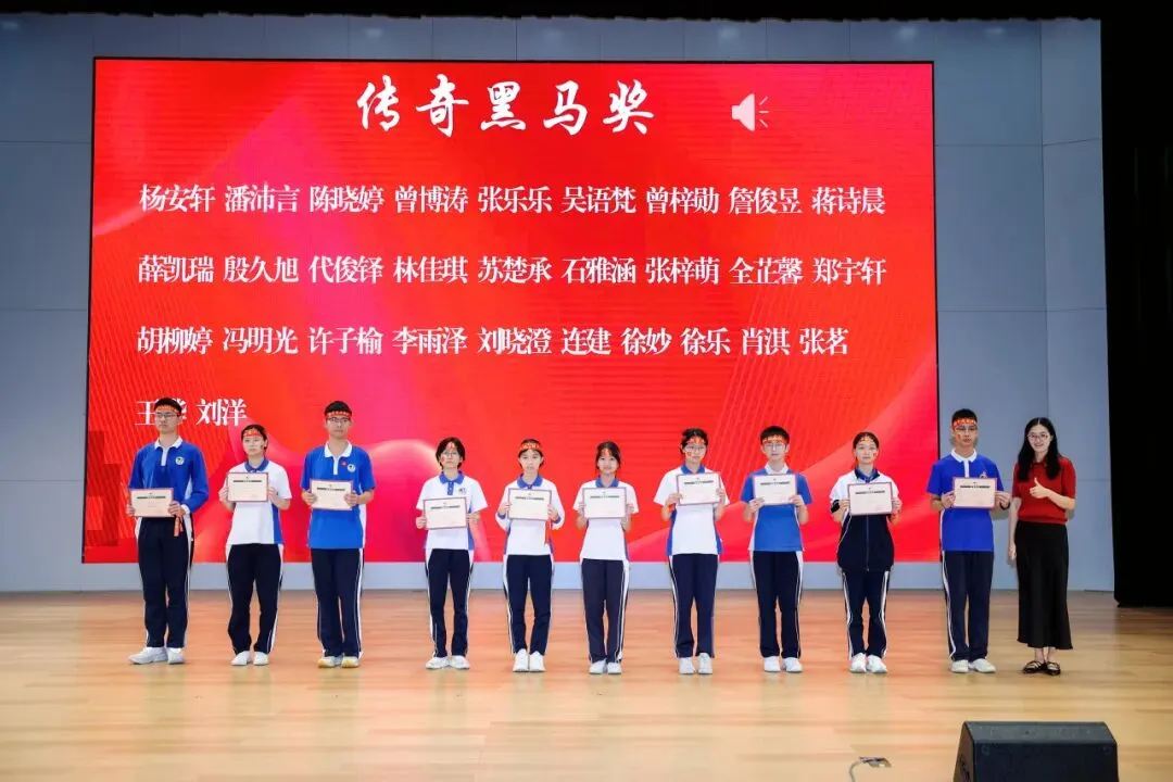 表彰先进聚力量,榜样力量促前行。课程教学中心负责人舒莉老师为学生代表颁发一马当先奖,林颖副校长为学生代表颁发传奇黑马奖。一张张崭新的奖状,是对学子们日夜不懈努力的肯定与嘉奖,更是对全体初三学子的激励与指引。愿大家在榜样的引领下,找准方向、奋起直追,在中考的赛道上勇毅前行。