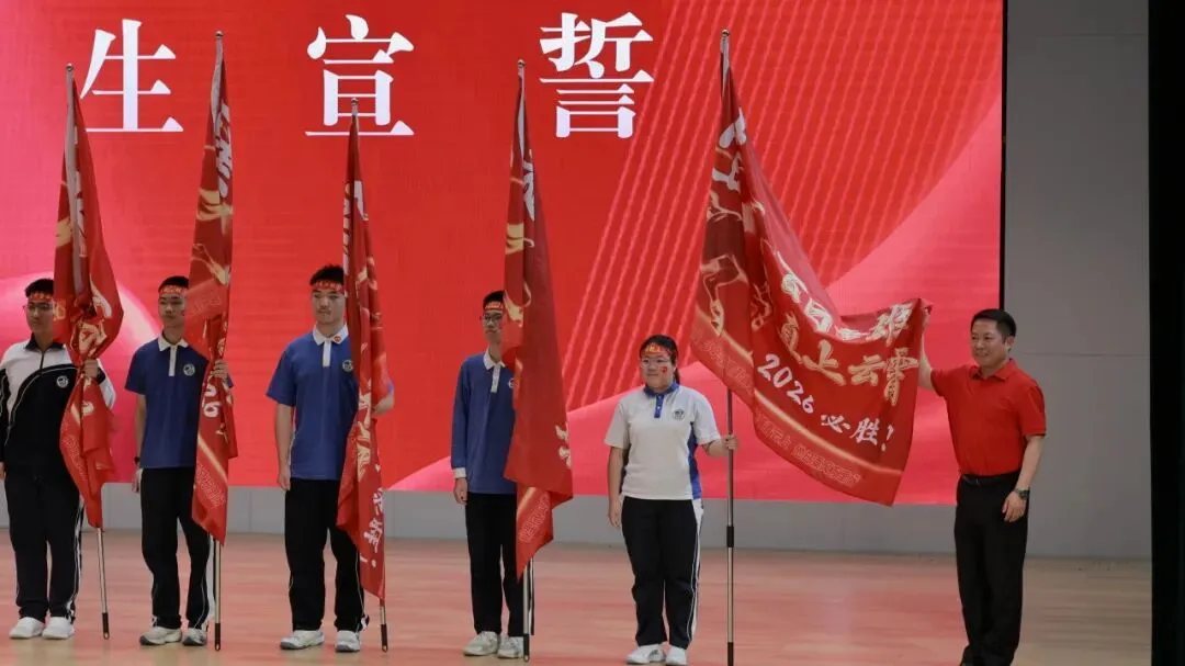 授旗呼号后,学校集团办何宏武主任为同学们做出发前动员,他为学子们指引方向、鼓舞士气,叮嘱大家以战旗为指引,以誓言为动力,在最后的冲刺阶段中脚踏实地、全力以赴。